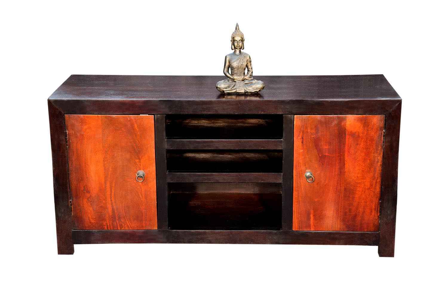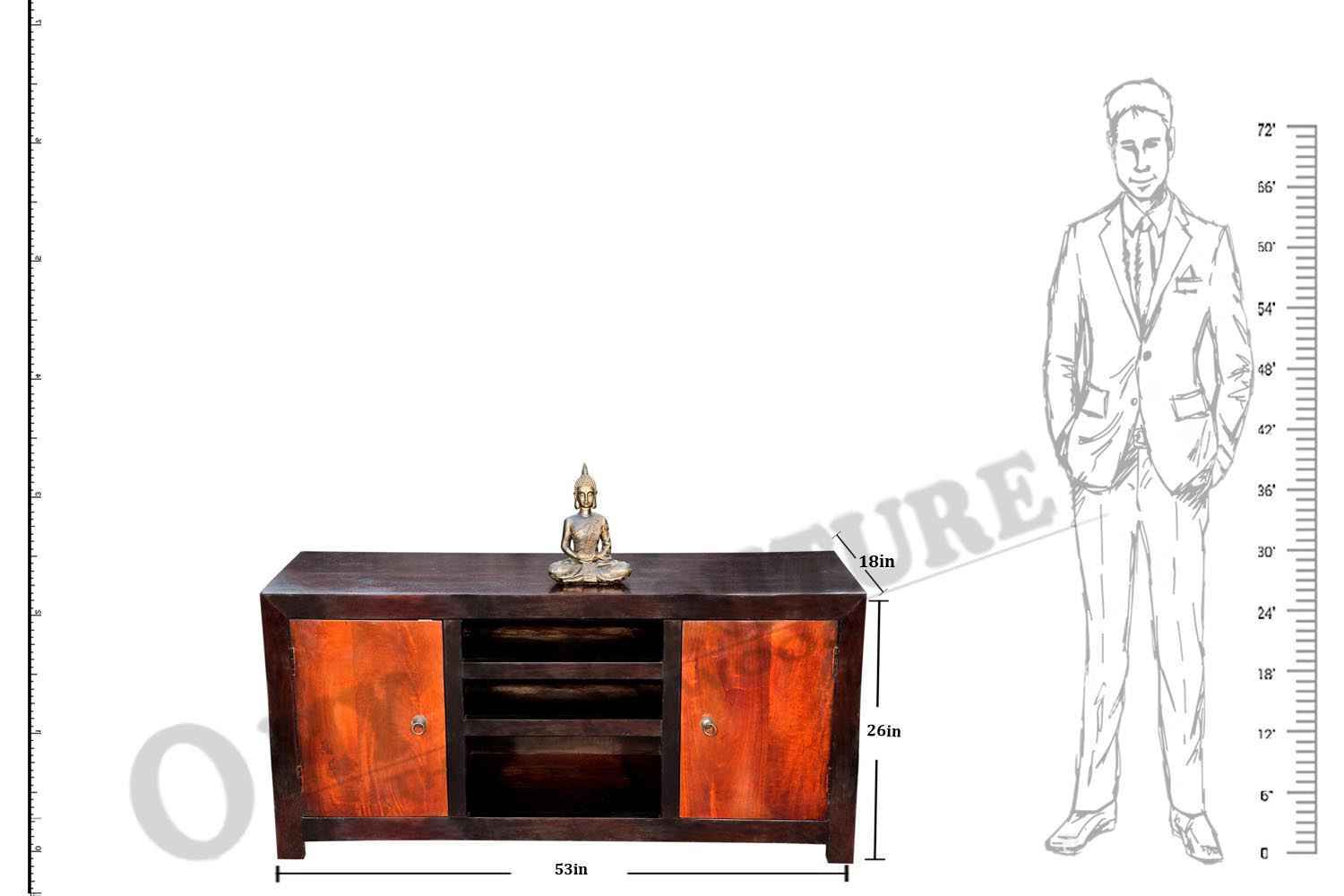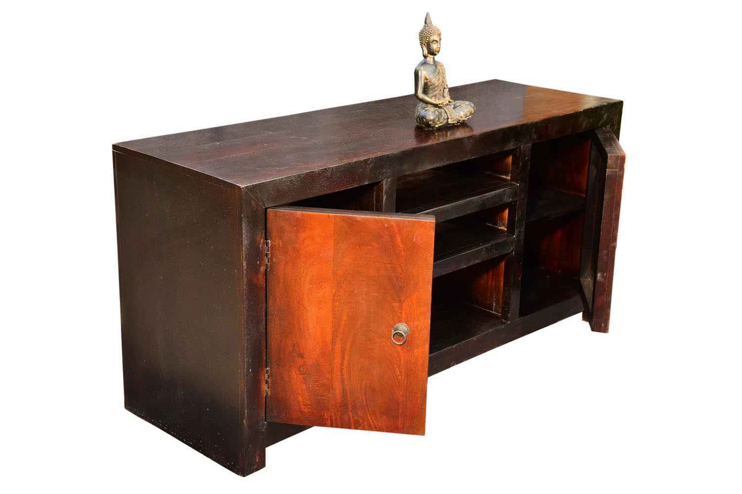 Recto three drawer tv unit is made by Sheesham (Rosewood) with teak finish. It is a television unit that contains three drawers and one blank section. We use Stainless steel accessories. It is a heavy and stable product. Sheesham wood furniture always count as a best quality product to buy.You can buy Solid wood furniture online from O my furniture.