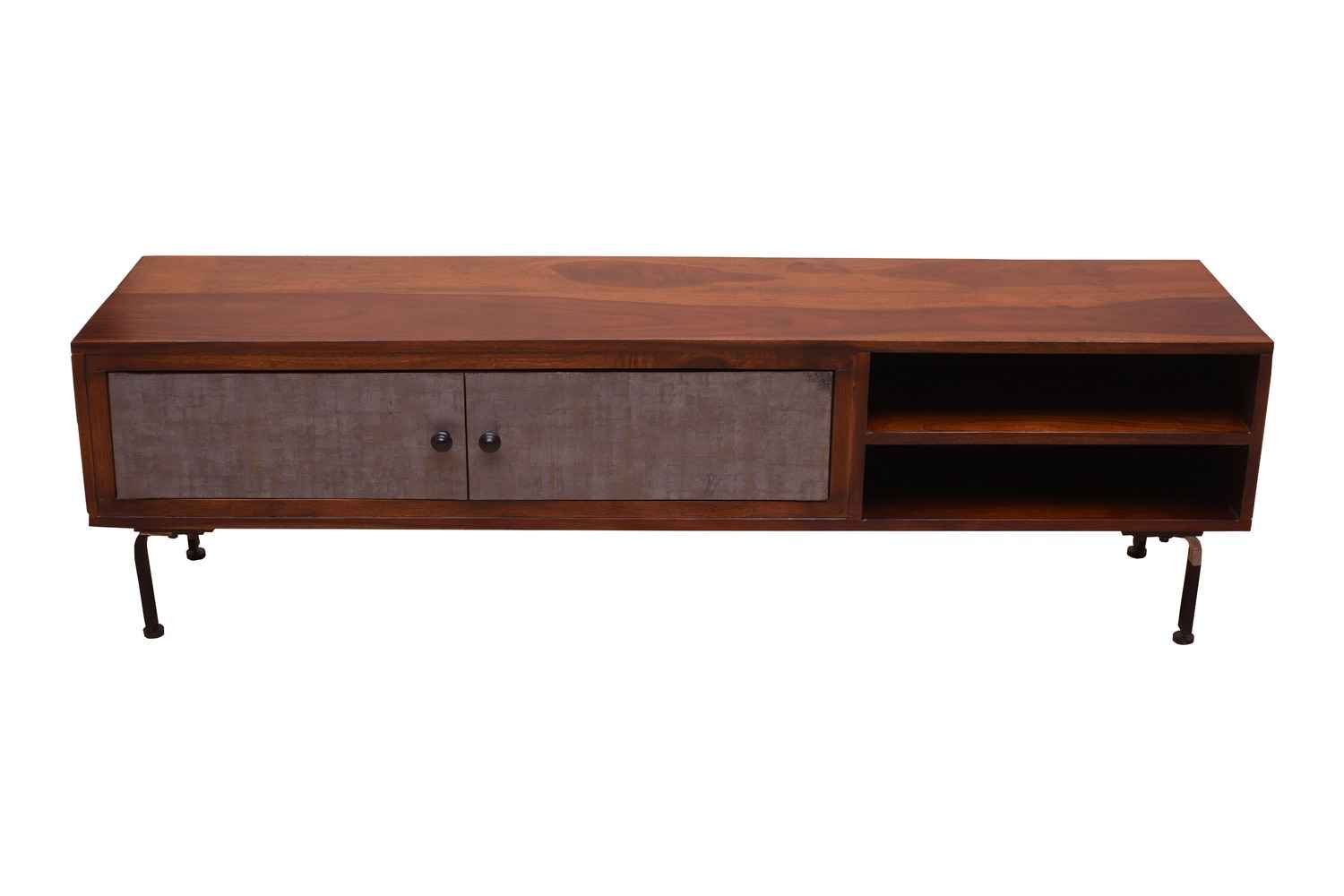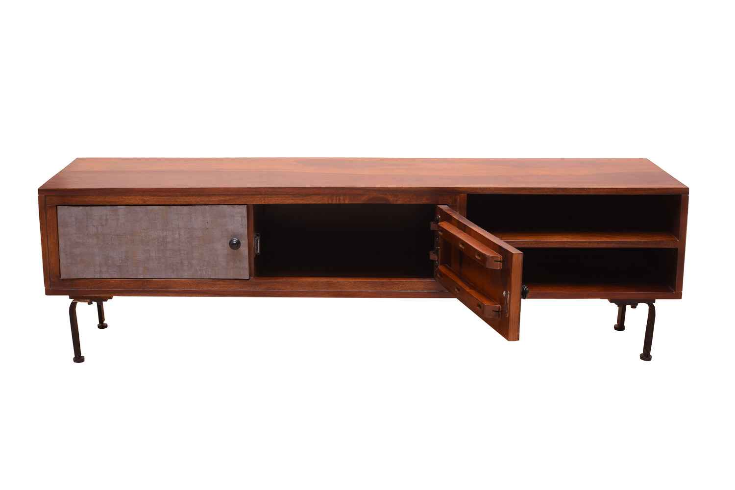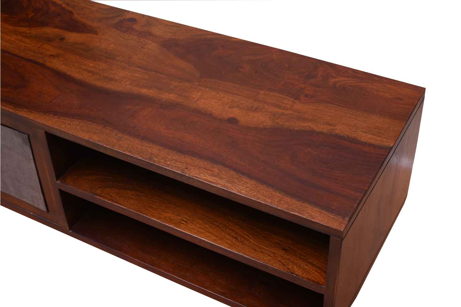 Recto three drawer tv unit is made by Sheesham (Rosewood) with teak finish. It is a television unit that contains three drawers and one blank section. We use Stainless steel accessories. It is a heavy and stable product. Sheesham wood furniture always count as a best quality product to buy.You can buy Solid wood furniture online from O my furniture.