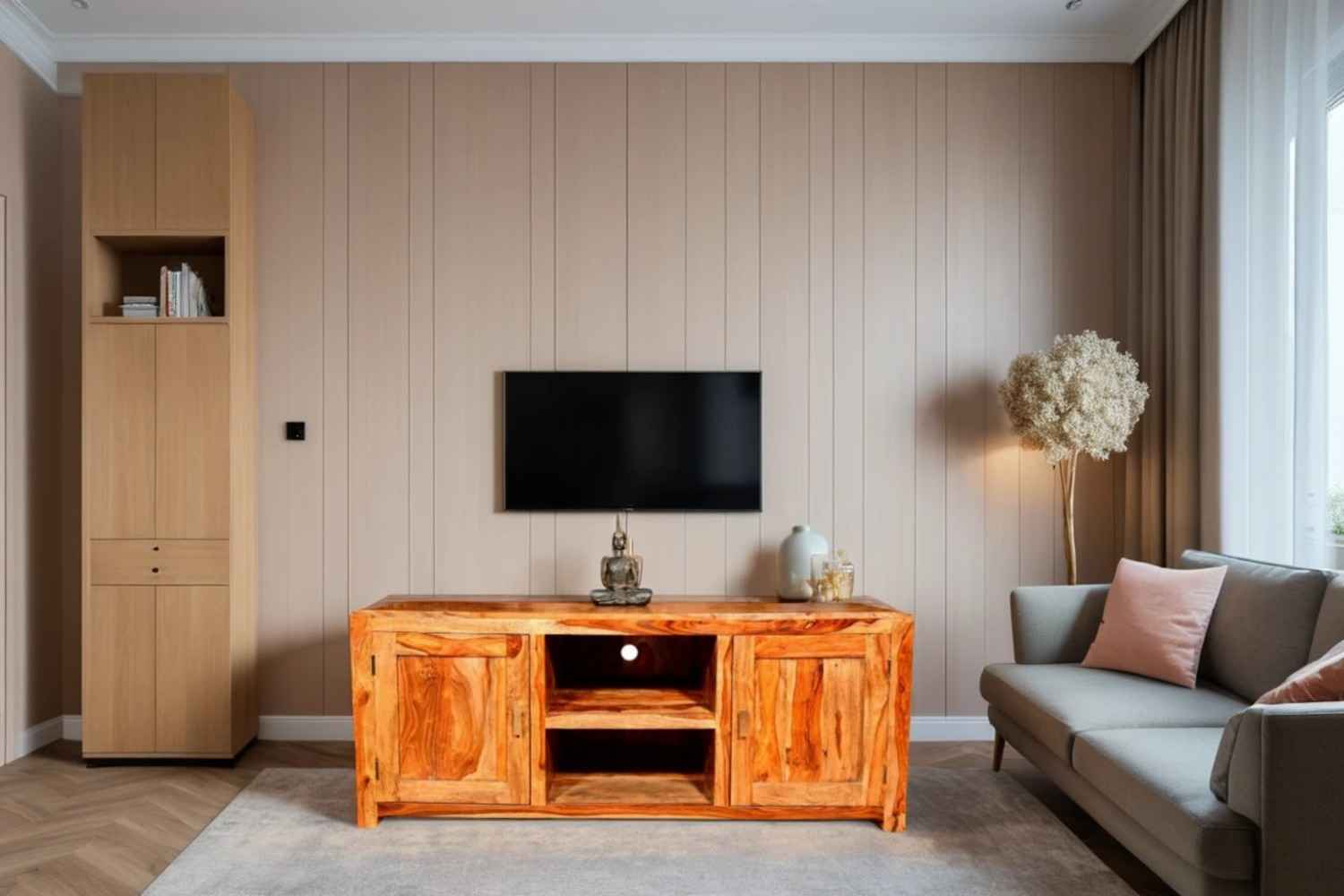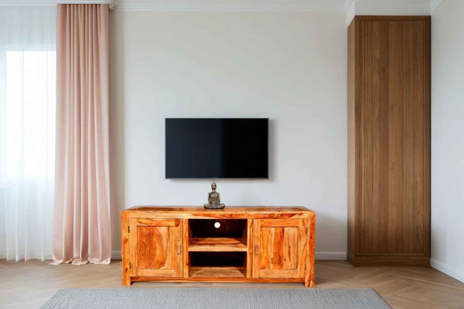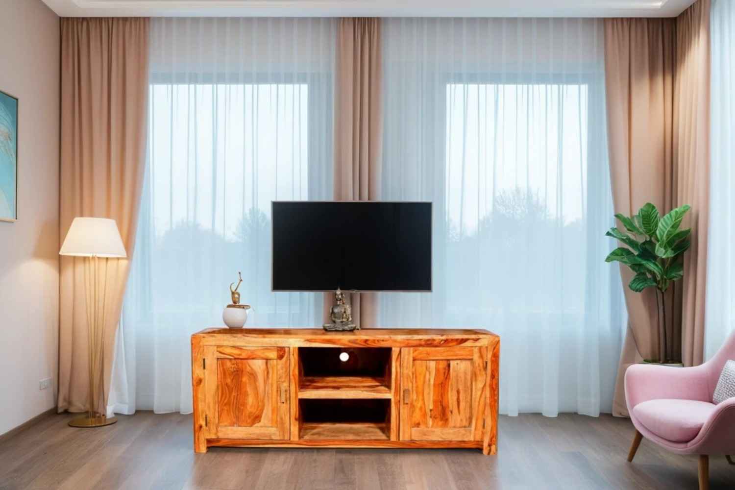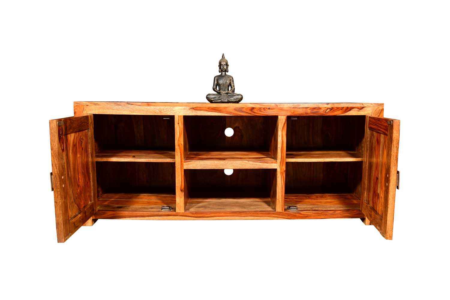 Recto three drawer tv unit is made by Sheesham (Rosewood) with teak finish. It is a television unit that contains three drawers and one blank section. We use Stainless steel accessories. It is a heavy and stable product. Sheesham wood furniture always count as a best quality product to buy.You can buy Solid wood furniture online from O my furniture.