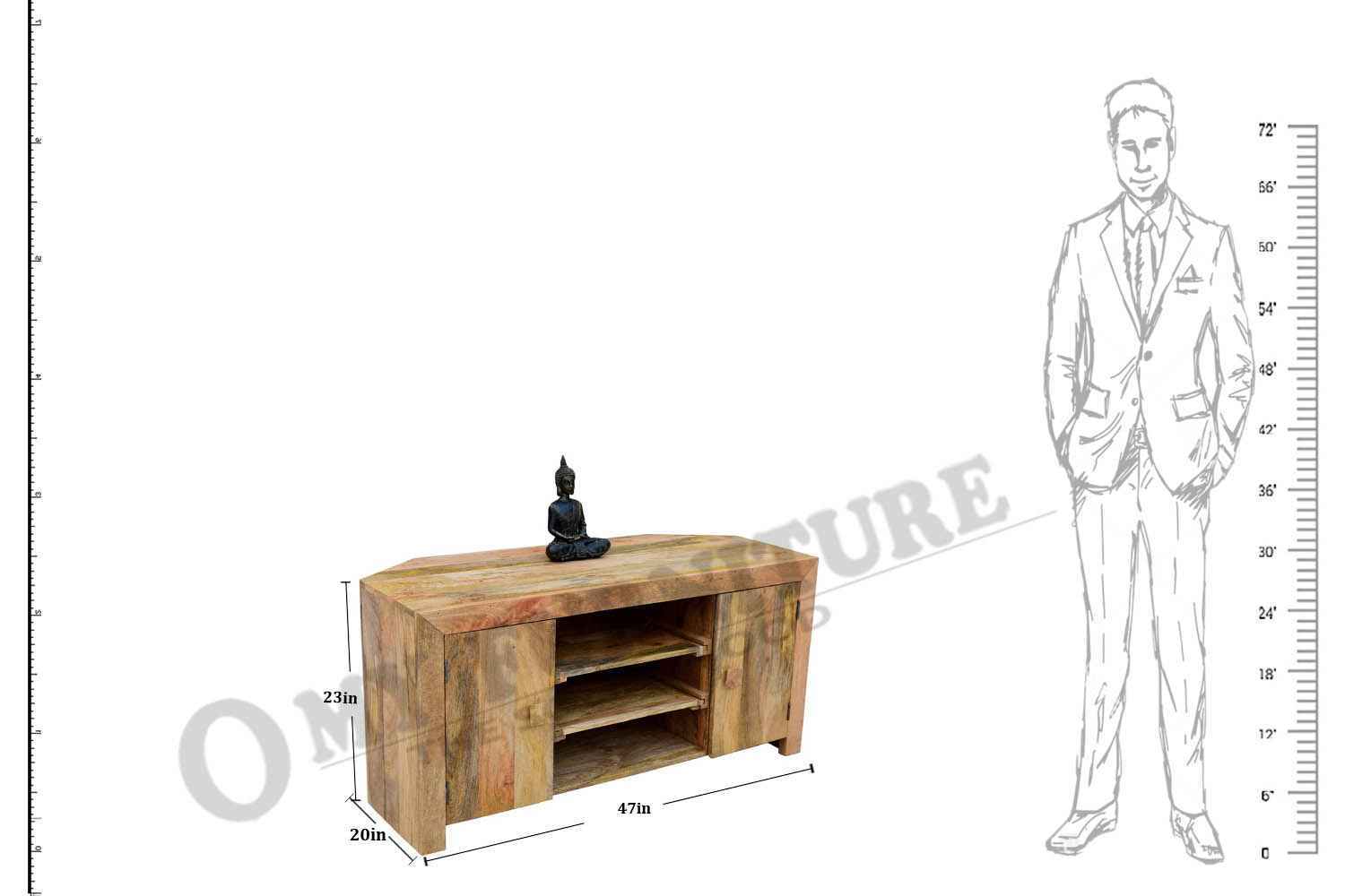 Recto three drawer tv unit is made by Sheesham (Rosewood) with teak finish. It is a television unit that contains three drawers and one blank section. We use Stainless steel accessories. It is a heavy and stable product. Sheesham wood furniture always count as a best quality product to buy.You can buy Solid wood furniture online from O my furniture.