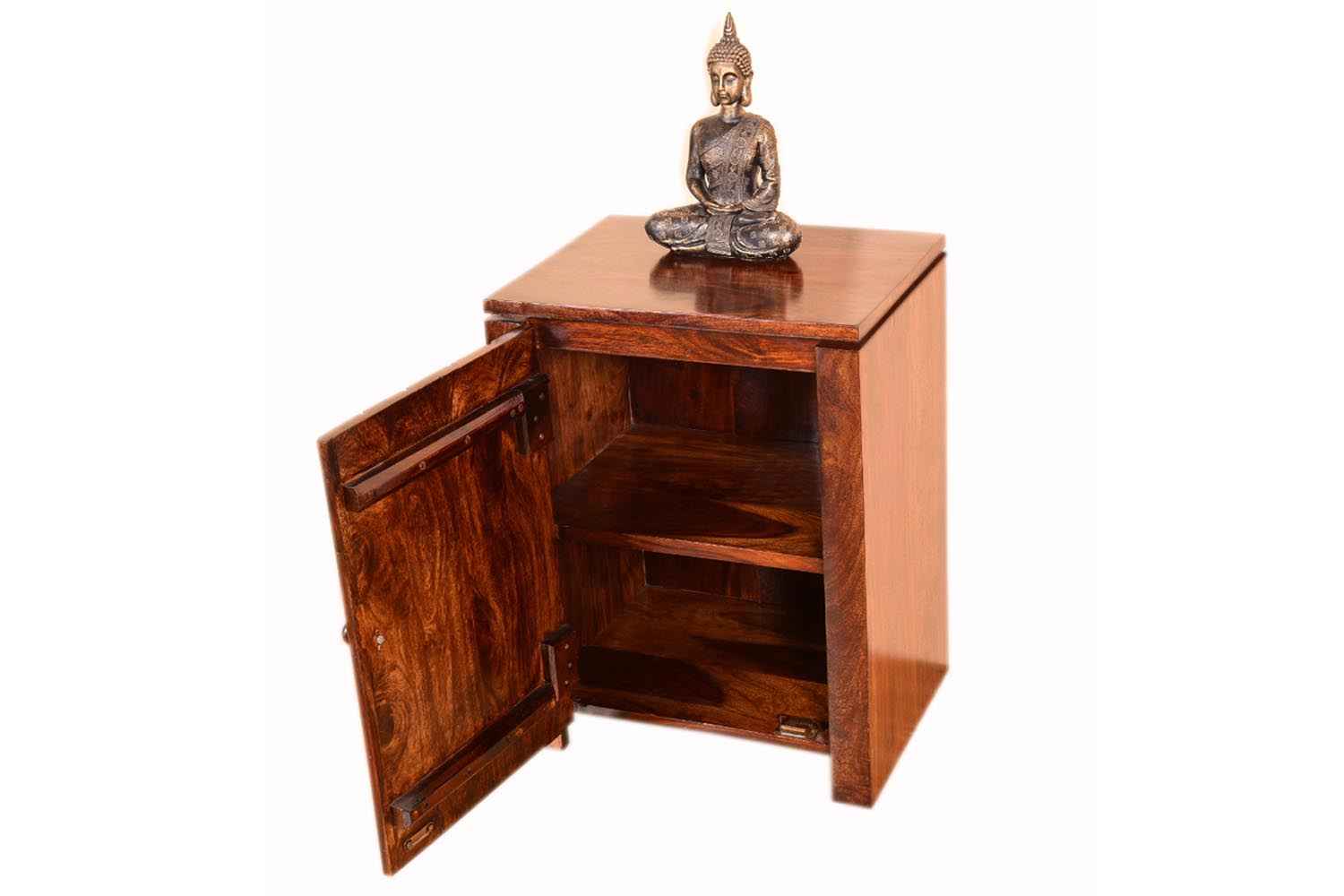 Earl one drawer bottom shelf wooden bedside is made by Sheesham (Rosewood) with teak finish. It is one drawer bottom shelf bedside with iron leg. Sheesham wood furniture always count in good quality & reliable furniture. You can buy Sheesham wood furniture online from O my furniture.