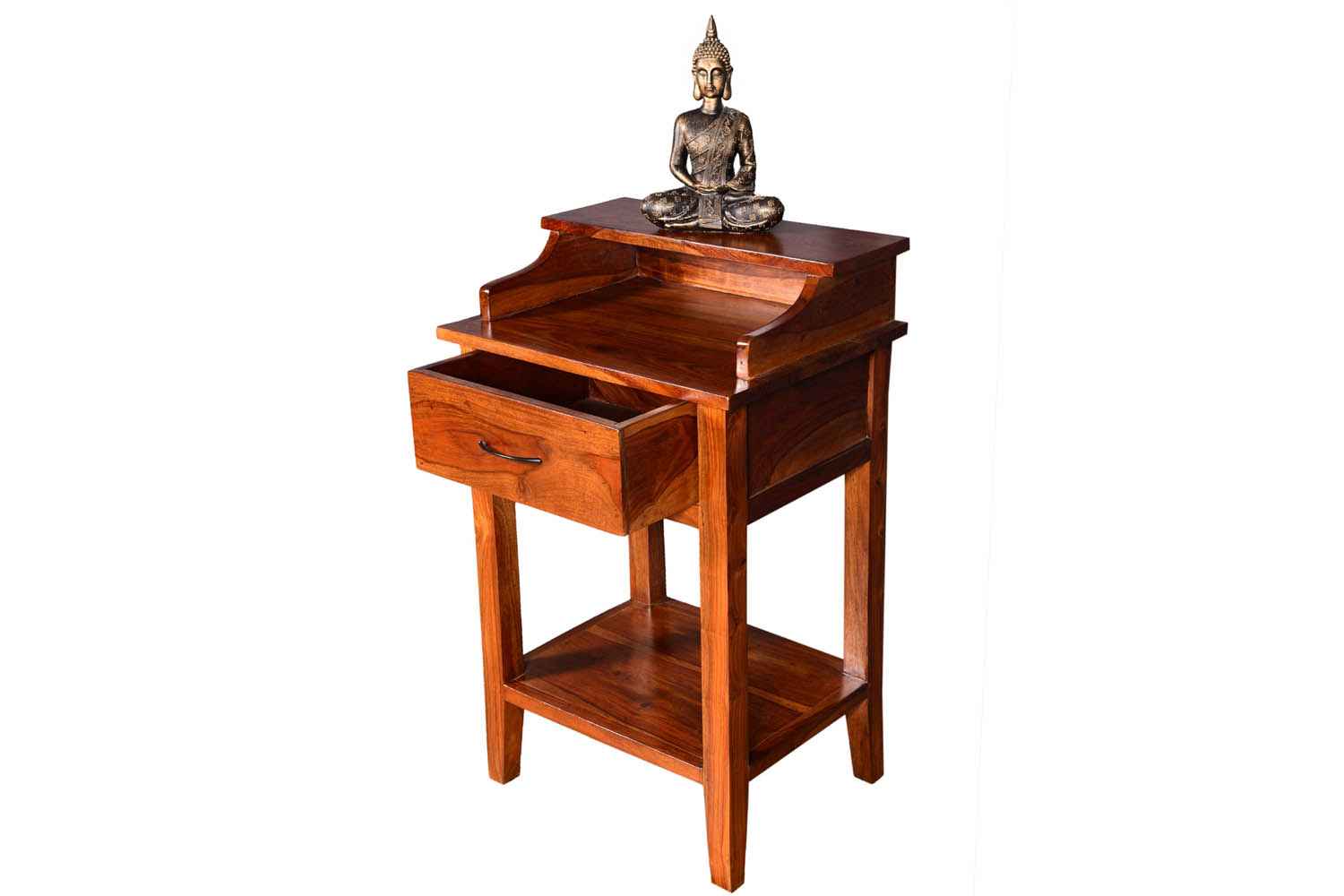 Neoteric console cum study table with bottom self is made by Sheesham (Rosewood) with teak finish. That is one drawer study table. Study table contains bottom shelf for store extra article.As we know Sheesham wood furniture or solid wood furniture have good strength and this type of wooden furniture always count in good quality furniture. You can buy Solid wood furniture online by O My Furniture.