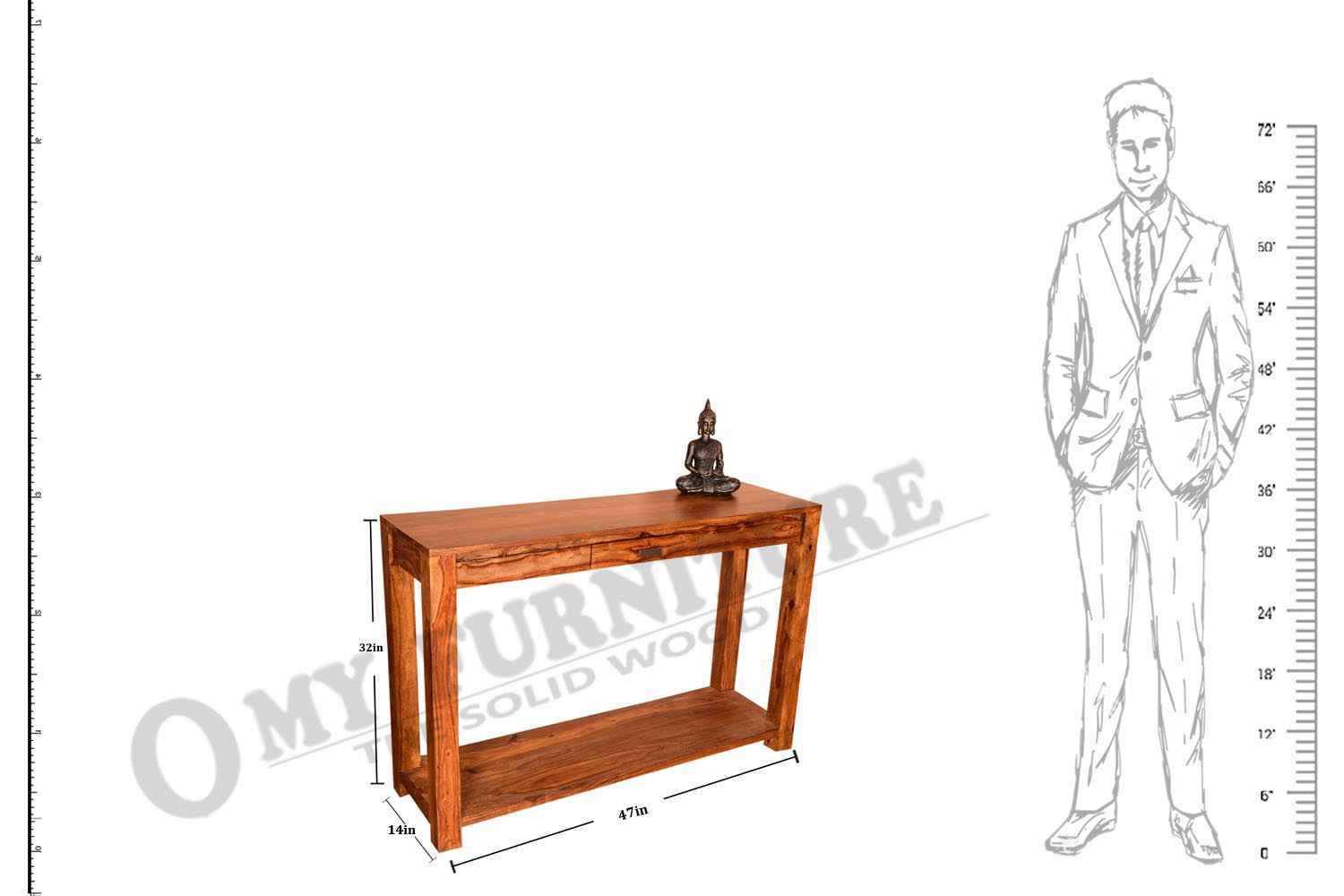 Neoteric console cum study table with bottom self is made by Sheesham (Rosewood) with teak finish. That is one drawer study table. Study table contains bottom shelf for store extra article.As we know Sheesham wood furniture or solid wood furniture have good strength and this type of wooden furniture always count in good quality furniture. You can buy Solid wood furniture online by O My Furniture.