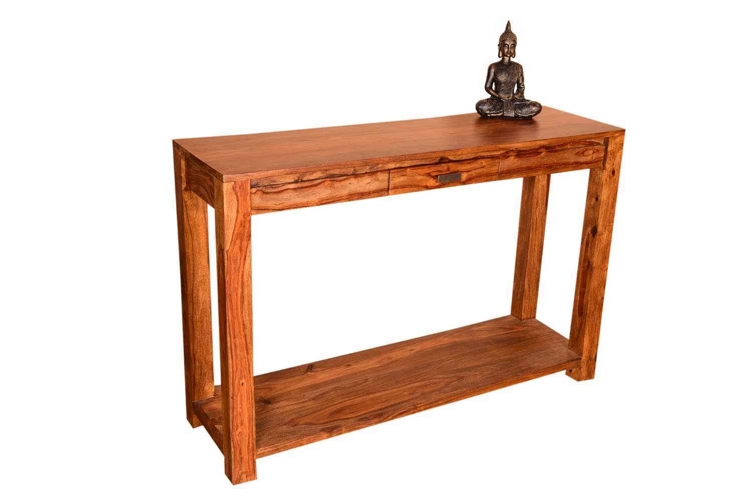 Neoteric console table is made by Sheesham (Rosewood) with teak finish. This is one drawer bottom shelf study table. We use stainless steel in accessory. As we know Sheesham wood furniture or solid wood furniture have good strength and this type of wooden furniture always count in good quality furniture. You can buy Solid wood furniture by online on O My Furniture.
