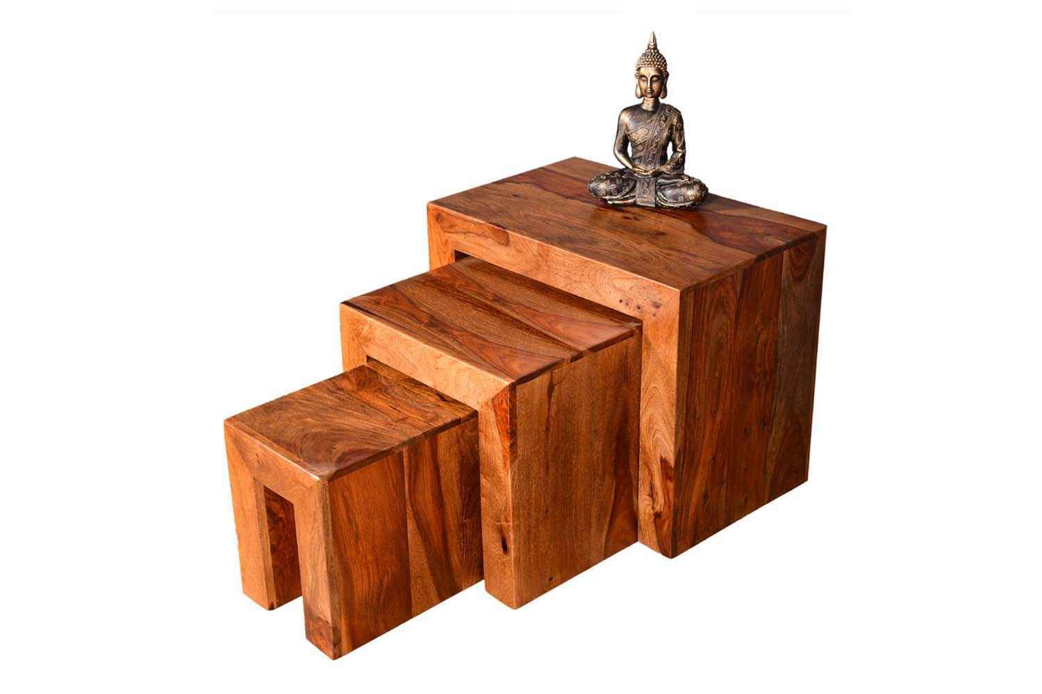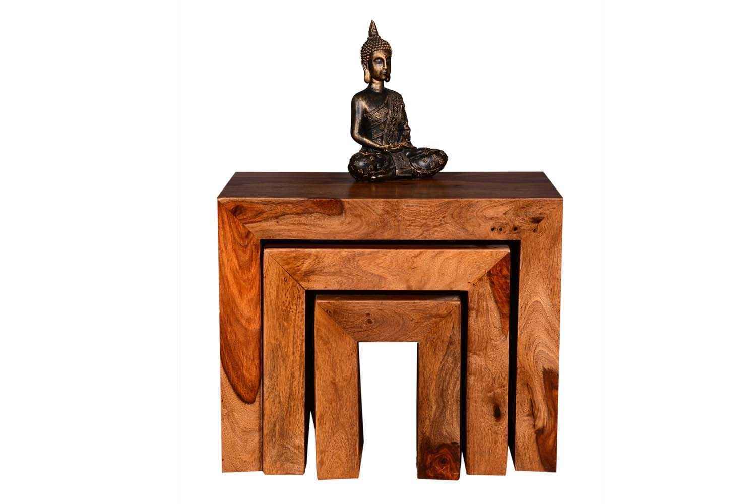 Nervy hollo leg Nested stool is made by Sheesham (Rosewood) with Mahogany finish. This is wide leg wooden stool attach with top.This Sheesham wood stools available in set of three. Sheesham wood furniture always counts in good quality furniture. You can purchase Sheesham wood furniture online by O My Furniture.