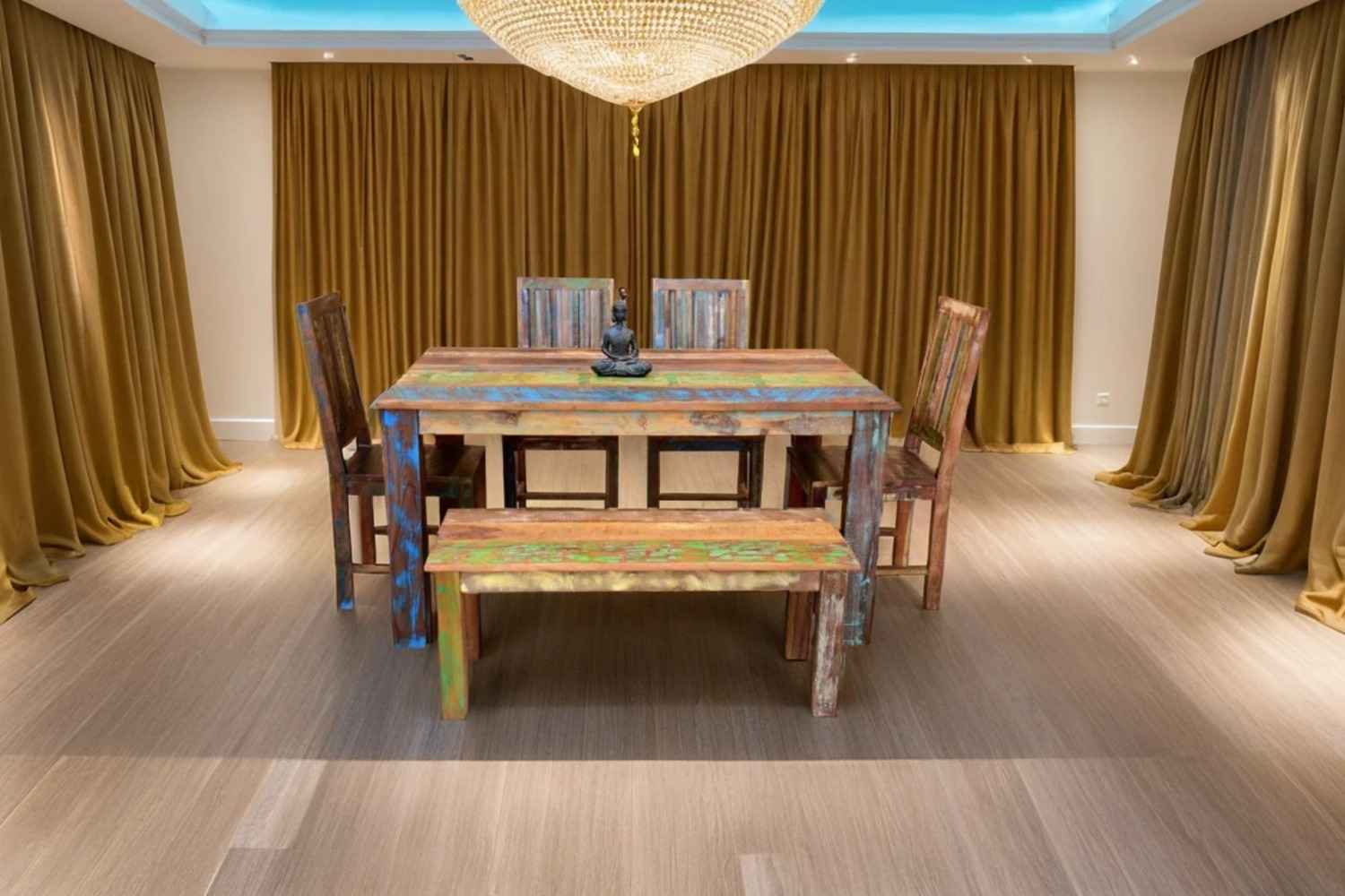 4 Seater Vintage Round Dining Table is made for your sweet home.It made by Sheesham (Rosewood) and iron capsule jail with Teak finish.It is a four seater dining table with round shape.This is vintage dining table with round carving leg.Its really inspire to vintage antique item.This dining table contain four Sheesham wood chair with teak finish. Sheesham wood furniture is always count in best quality furniture.