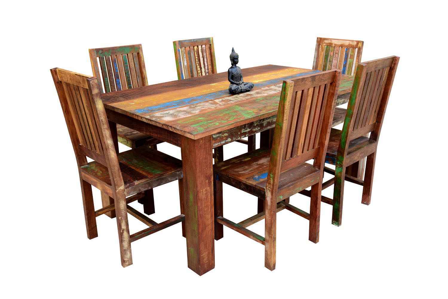 6 Seater Classic Dining Table Set Small size is made for your sweet home.It is made by Sheesham (Rosewood)with walnut finish. This dining table set is simple and good looking. This design mostly used in small space area.This dining table contains six Sheesham wood chair with teak finish. Sheesham wood furniture is always count in best quality furniture.