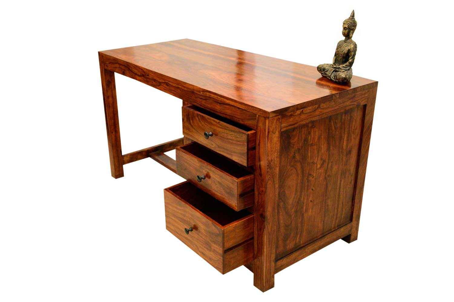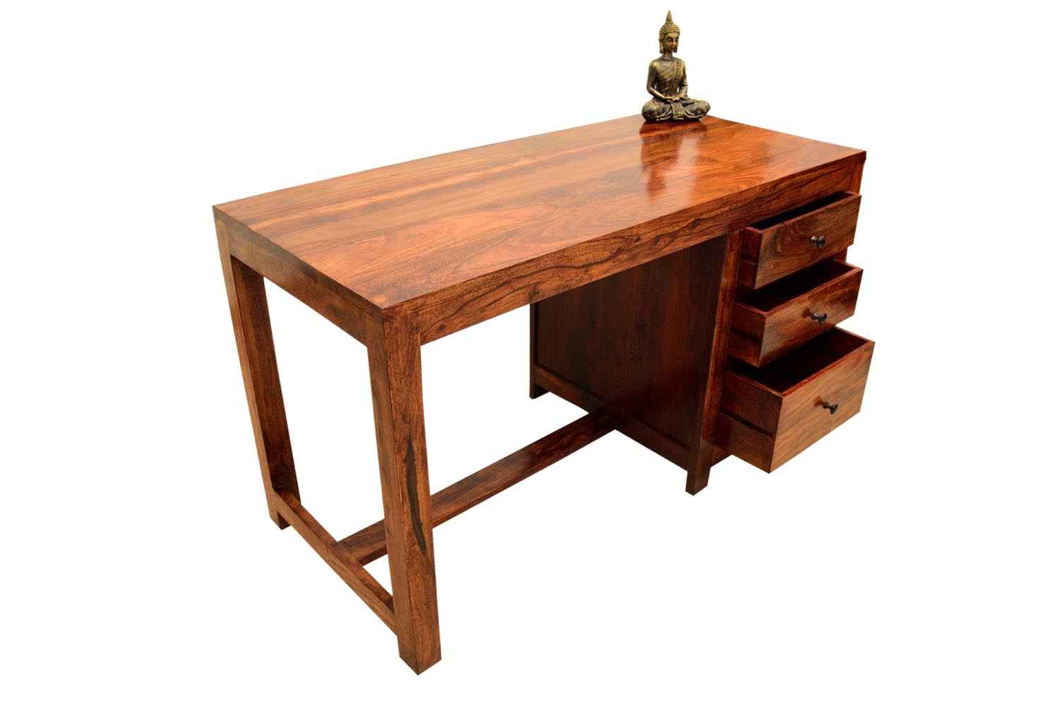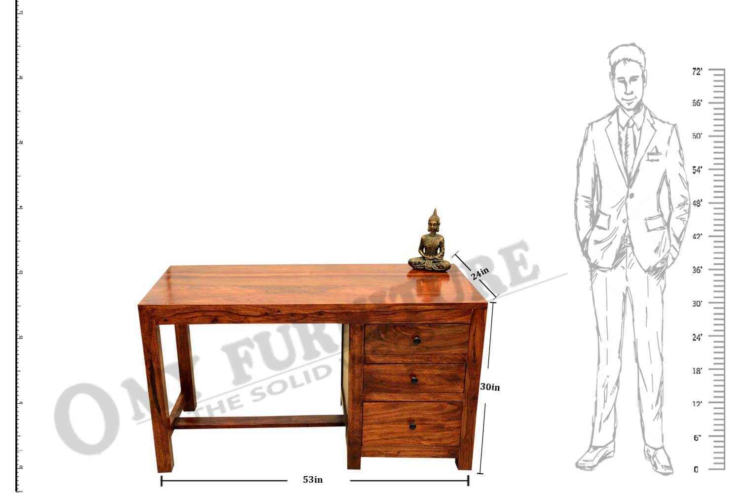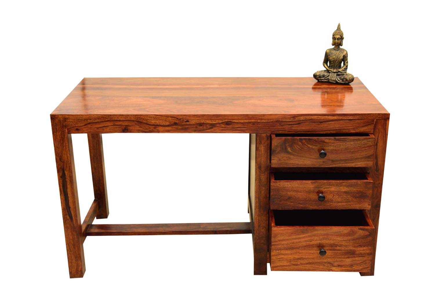 Pied three drawer study cum console table is made by Sheesham (Rosewood) with teak finish. This is three drawer study table. Drawers are set in right side.As we know Sheesham wood furniture or solid wood furniture have good strength and this type of wooden furniture always count in good quality furniture. You can buy Solid wood furniture online from O My Furniture.