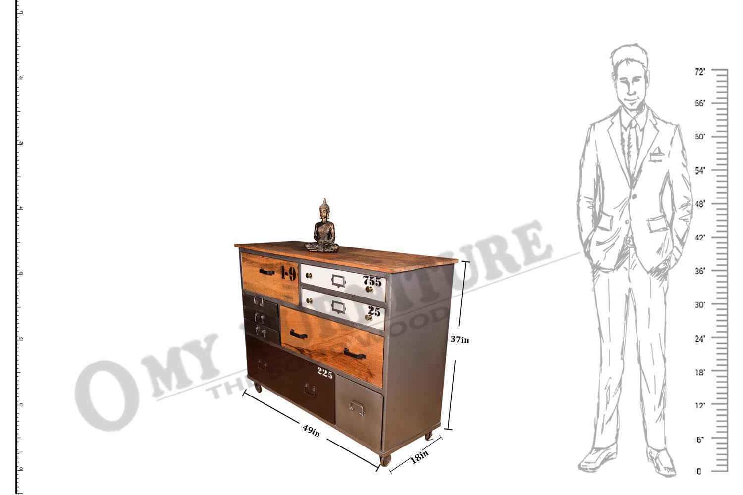Five drawer combo shelf  industrial wardrobe is made up of Mango wood with powder coated iron,For constant looking we use natural finishing. This industrial wardrobe contains five drawers and small door sections.This wooden furniture wardrobe is made for multipurpose use such as  book rack.O my furniture is a best online home decor furniture store.