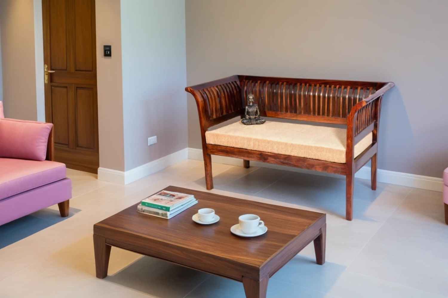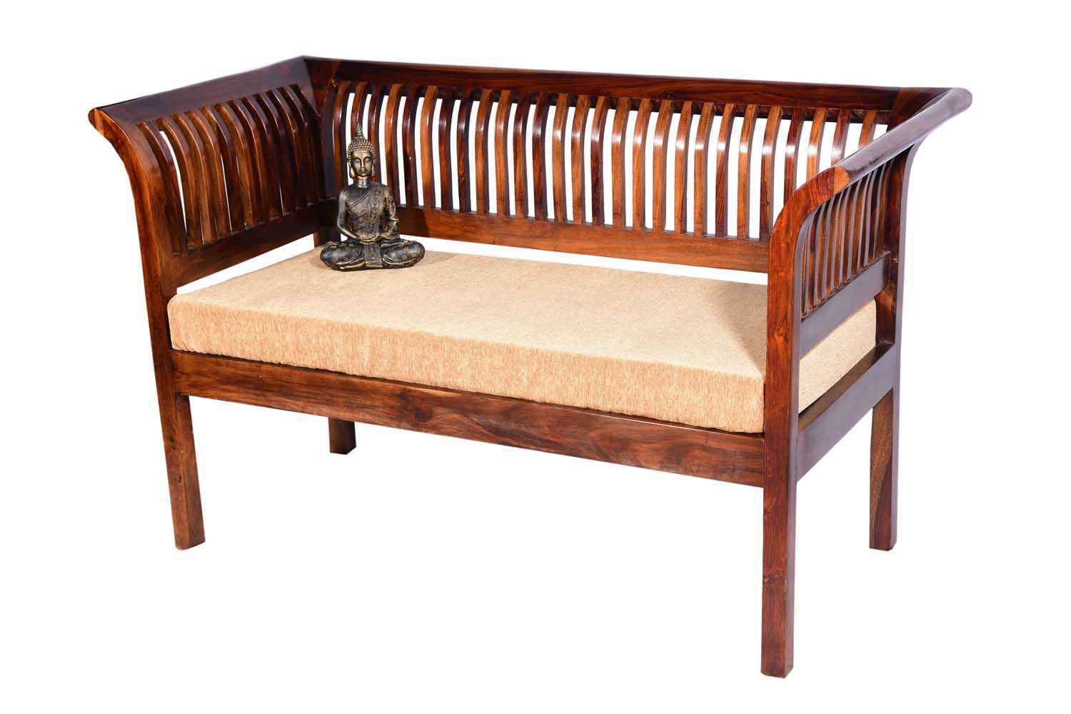 Mayur sofa two sitting is made by Sheesham (Rosewood) with teak finish. We use cream color upholstery on sitting and back section. This is two sitting comfortable and beautiful sofa. Sheesham wood furniture product always count as a best quality product to buy. You can buy Sheesham wood furniture online from O my furniture.