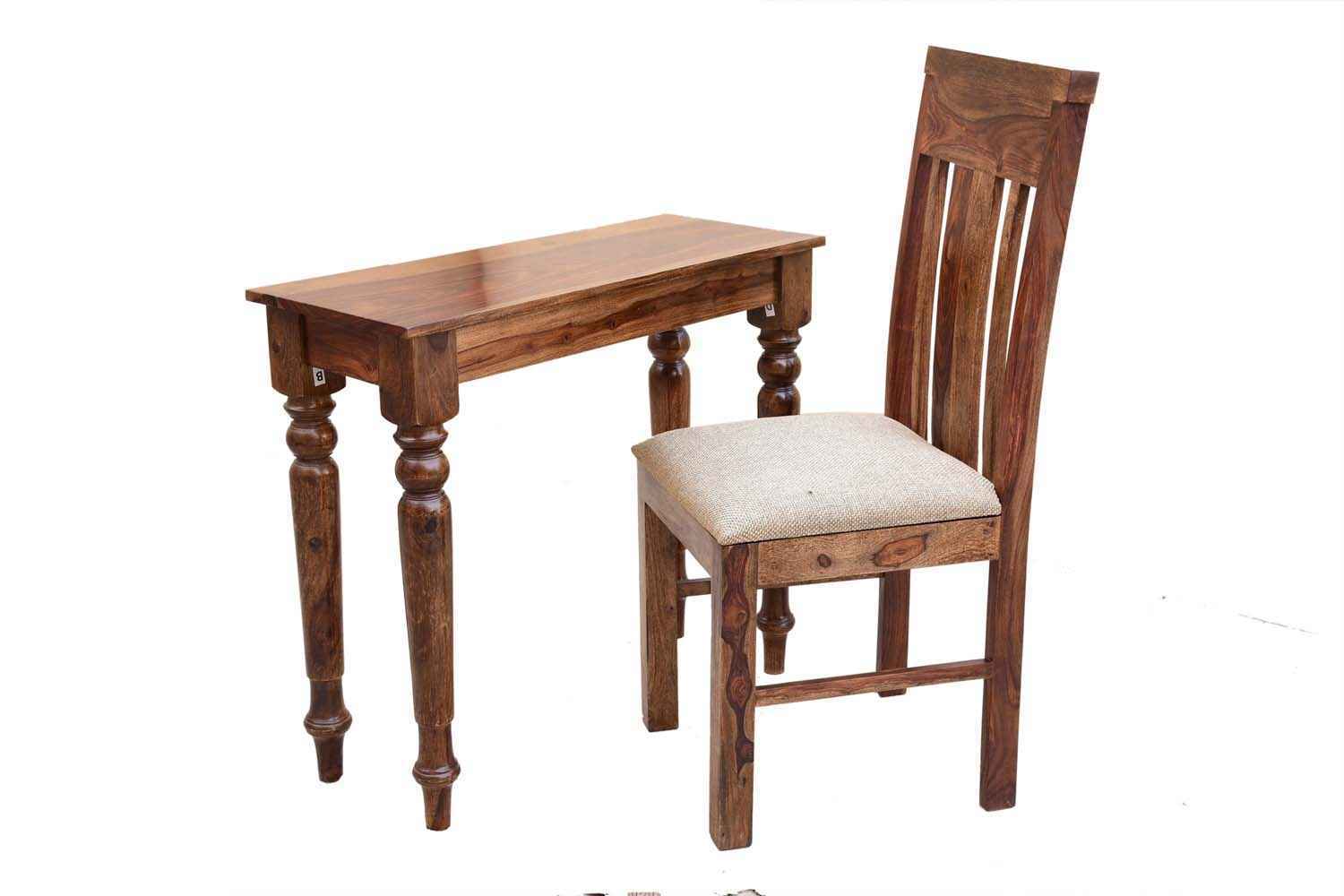 Classic bottom curved leg teak finish study table with zernal chair is set is made by Sheesham wood with teak finish. It is simple rectangle shape study table.This is also use as console table. It is light weighted and available in knockdown facility that makes shifting easy.