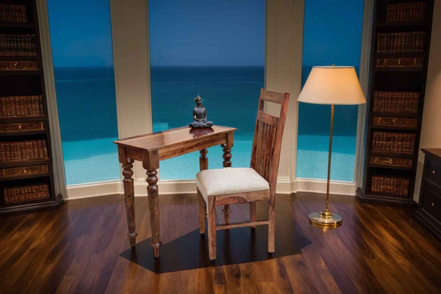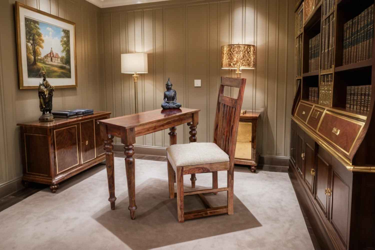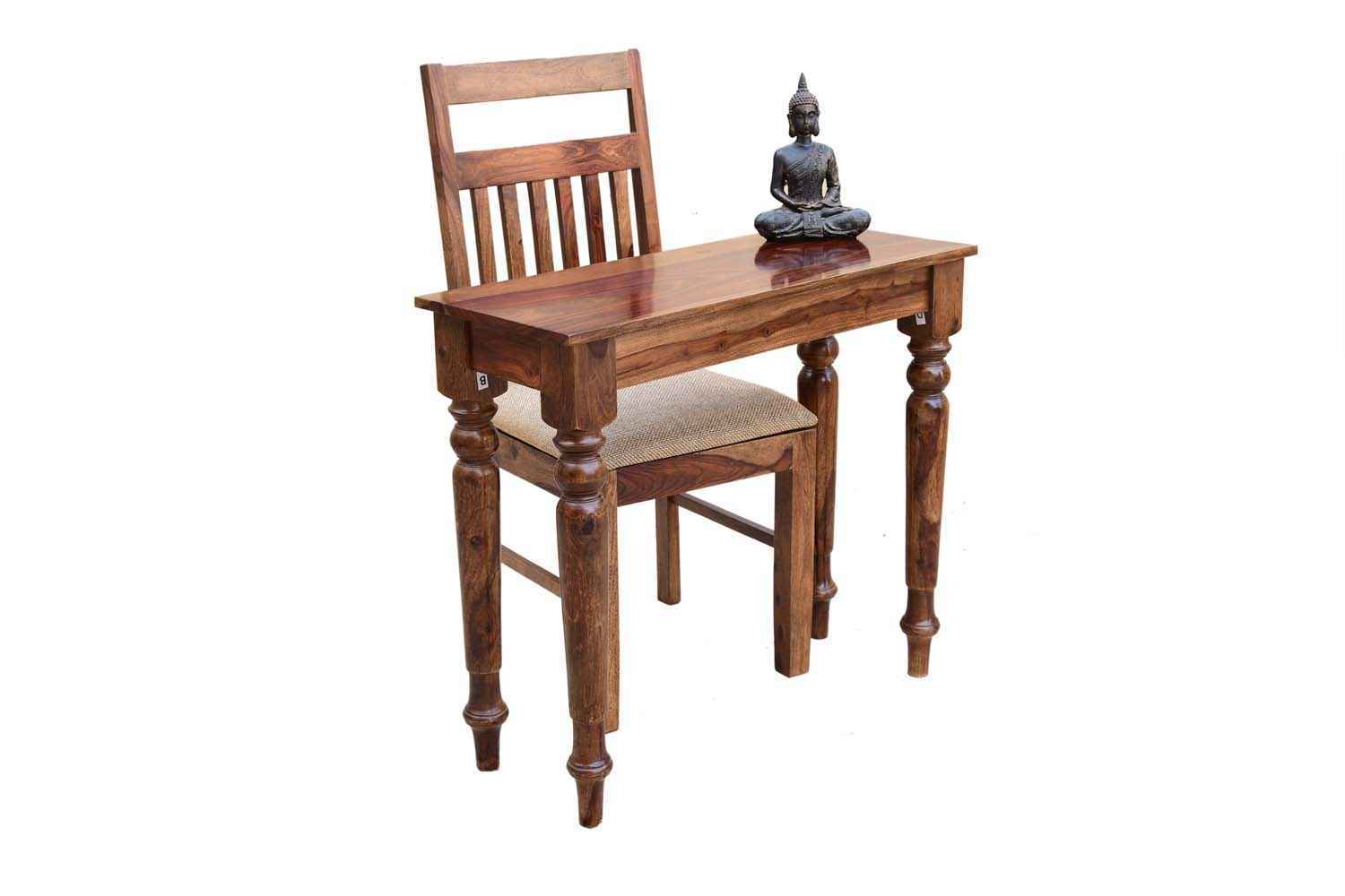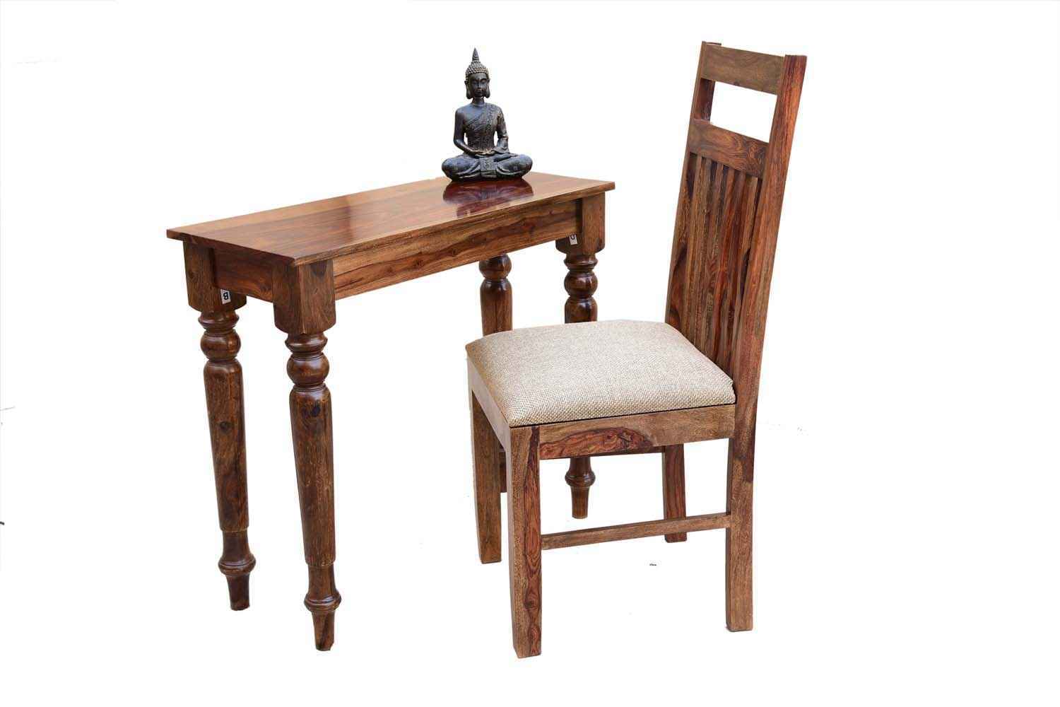 Classic bottom curved leg teak finish study table with zernal chair is set is made by Sheesham wood with teak finish. It is simple rectangle shape study table.This is also use as console table. It is light weighted and available in knockdown facility that makes shifting easy.
