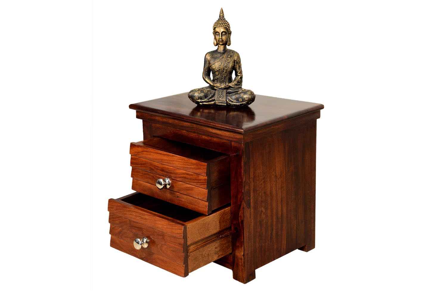 Marlboro Bedside is made by Sheesham (Rosewood) with Mahogany finish.It is one door bedside. Between top and side body frame, there is a gape and top is not completely attached with sides of the frame that gives an amazing look. In inner side there is a shelf which divide it into two parts section. For making of this wooden bedside we used magnet in inner section to give completely grip to the door. Door contain knob to open it easily. Sheesham wood furniture always count in good quality & reliable furniture.You can buy Sheesham wood furniture online from O my furniture.