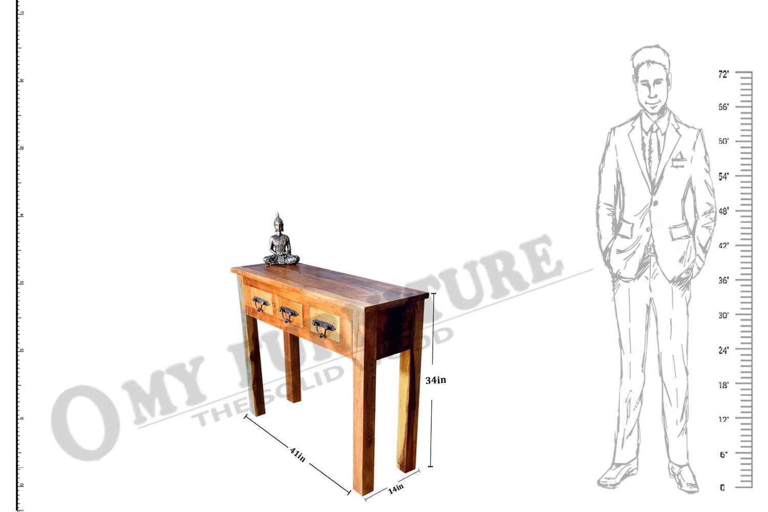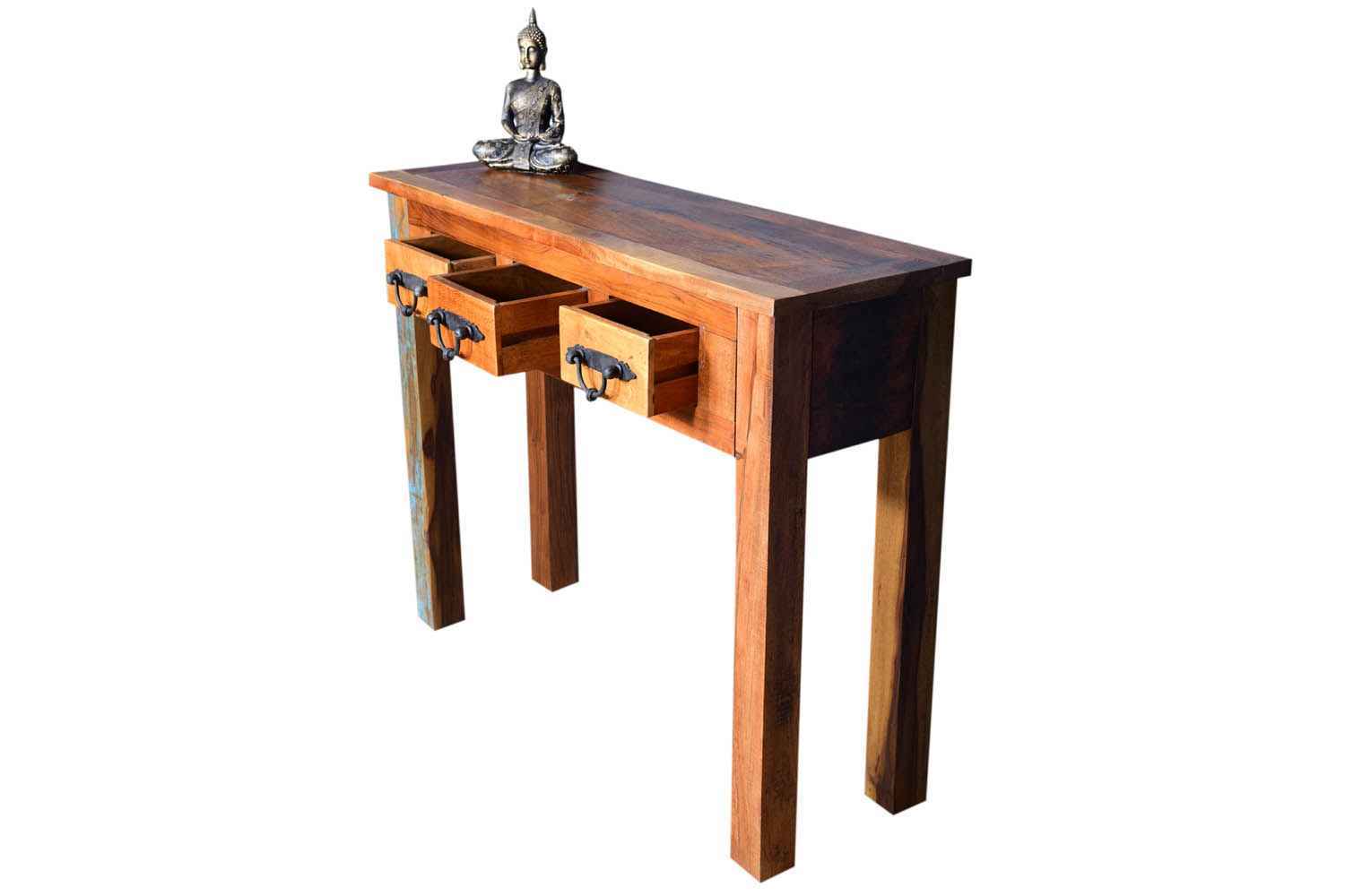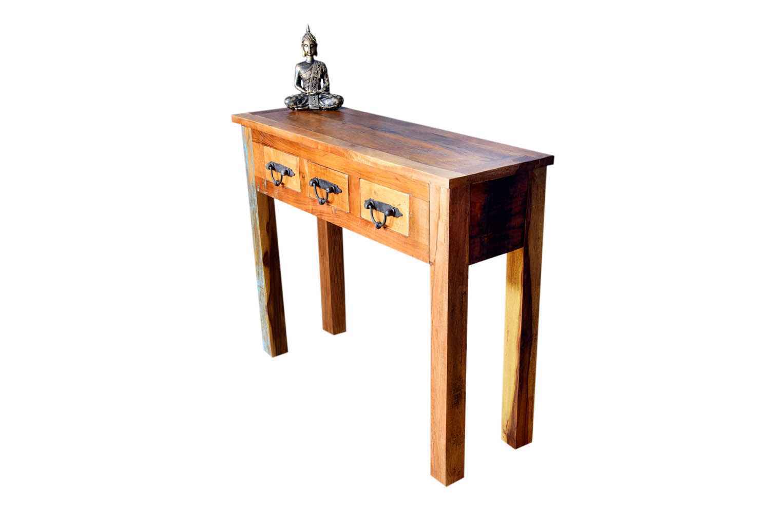 Queer three drawer console cum  study table is made by recycle wood with natural finish. This is three drawer study table.We use hard iron powder coated accessory. You can buy Solid wood furniture online from O my furniture.