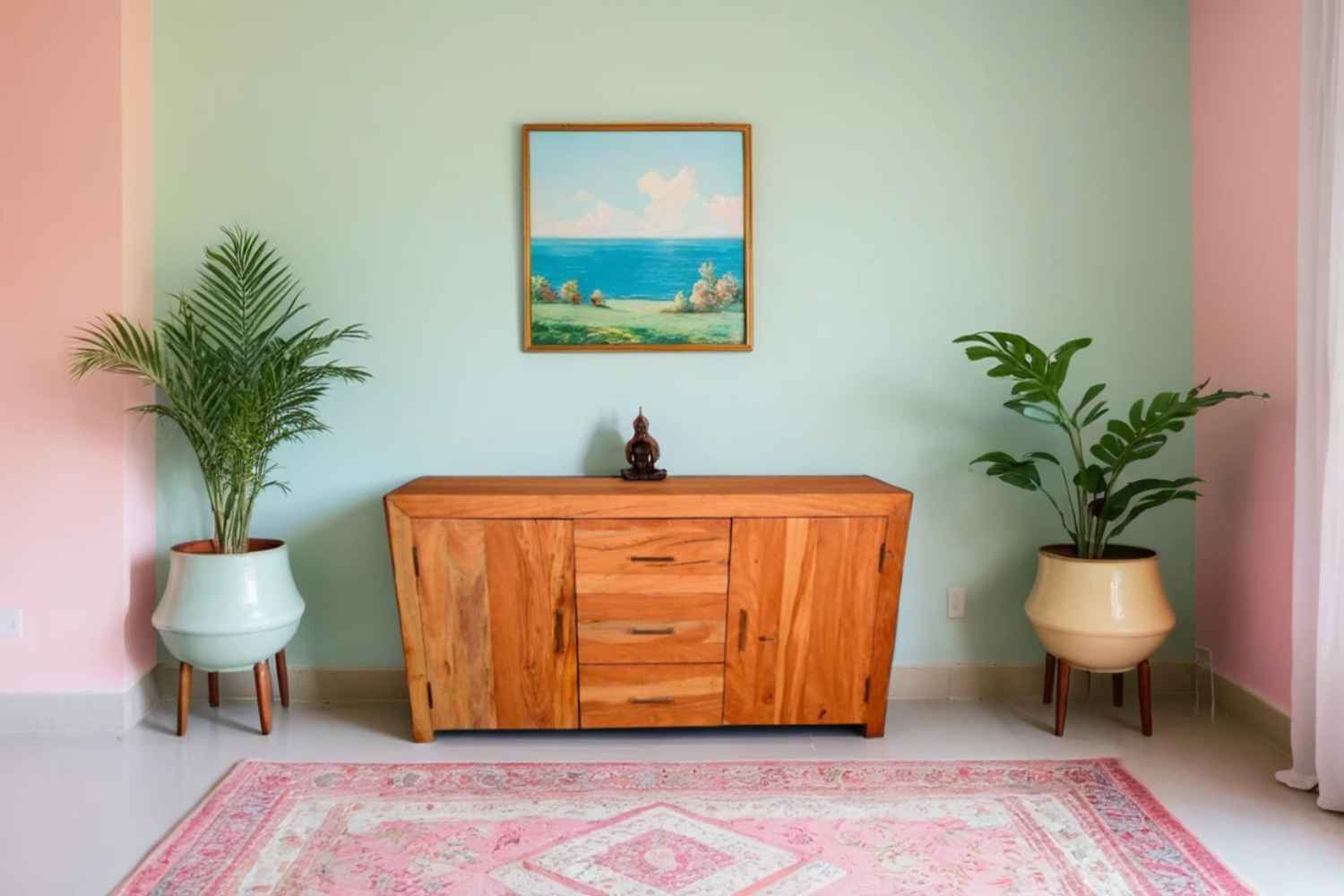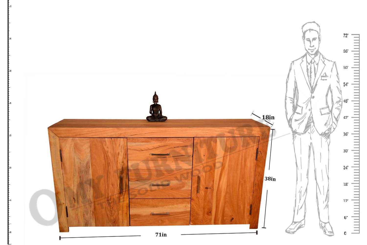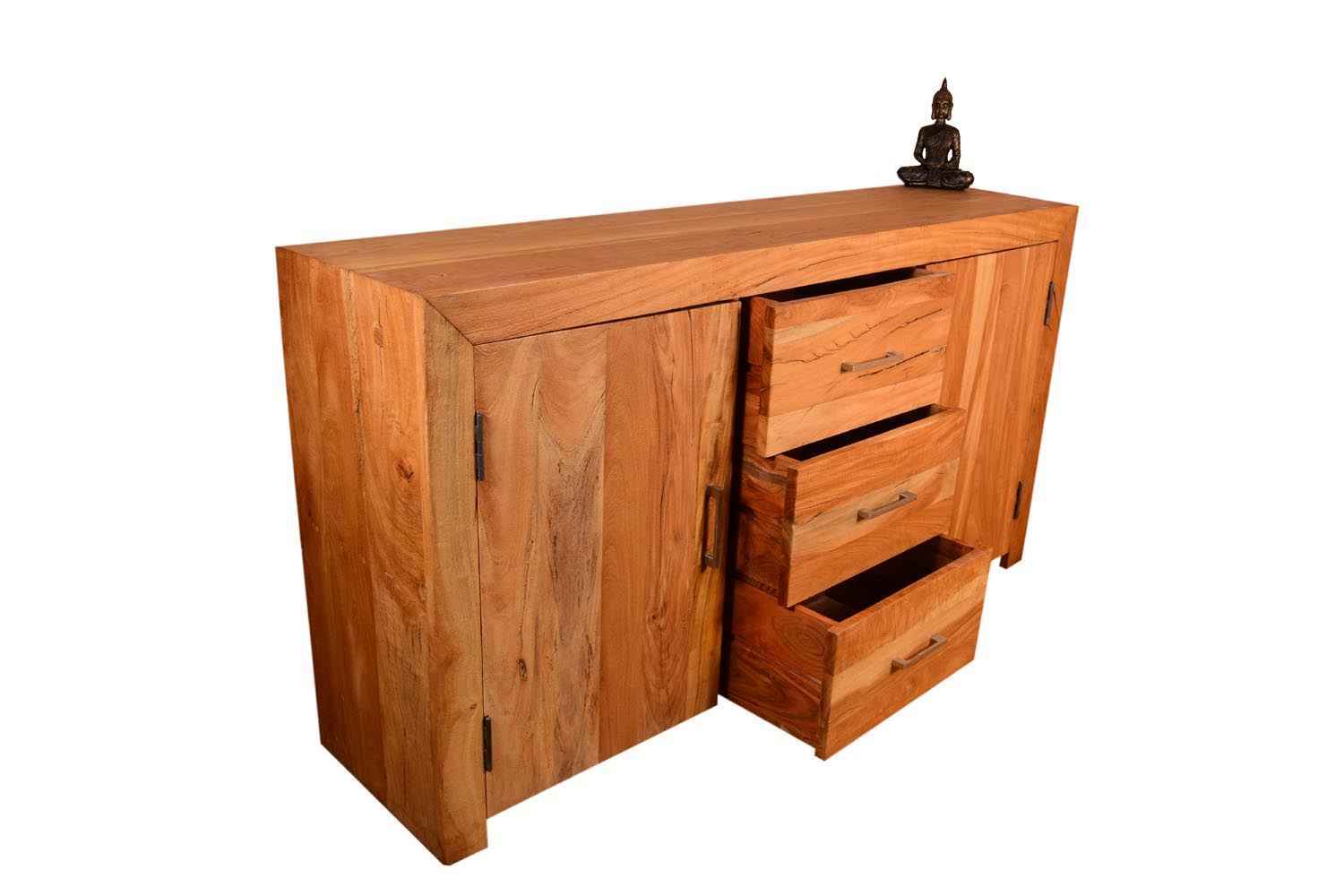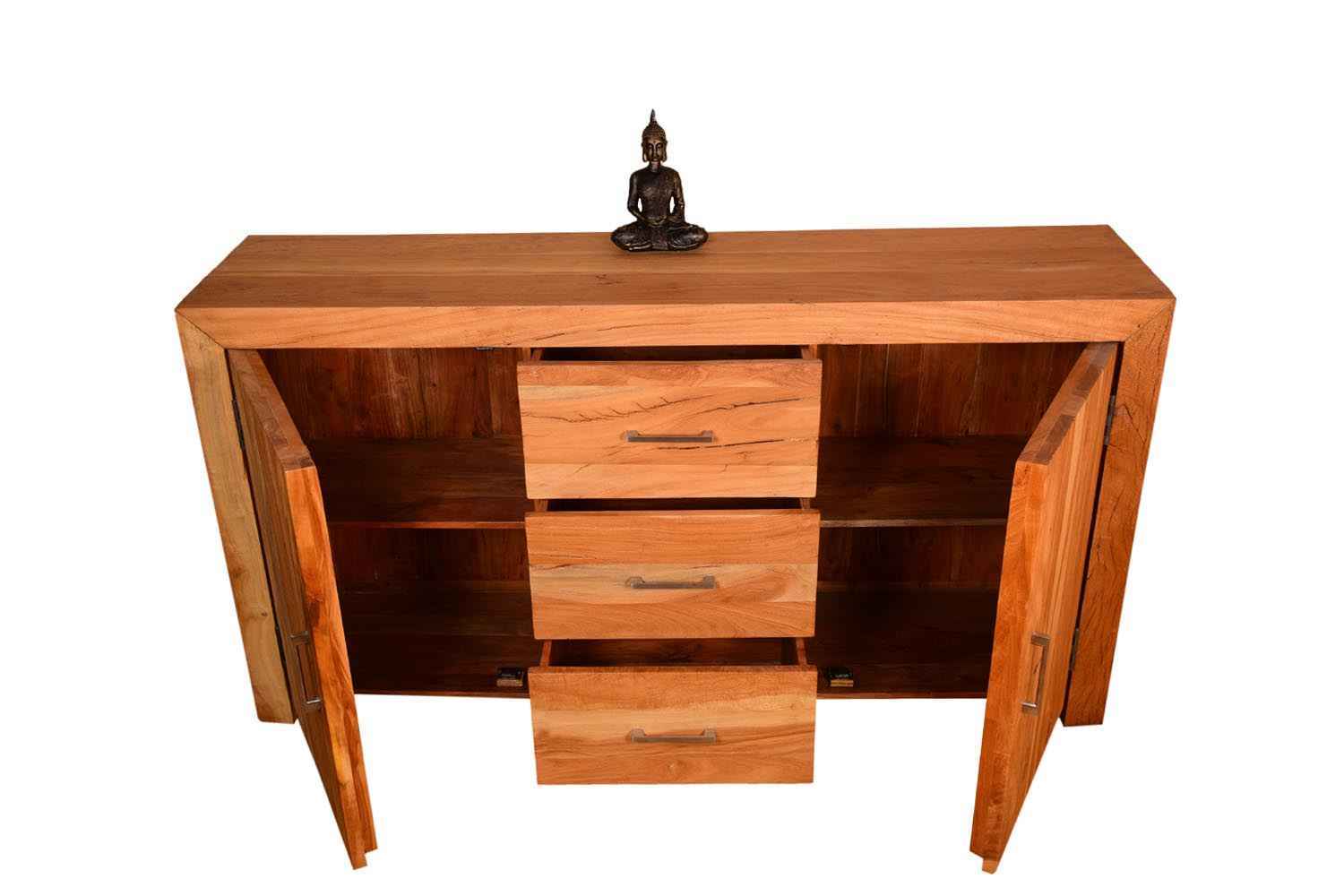Quondam three drawer two door sideboard is made by old wood with bleach finish & sandblasting. This is made by Old cracker wood. Side board has two doors and three drawer with beautiful stainless steel handle. Design and looks will make your interior more attractive. You can buy Solid wood furniture online from O my furniture.
