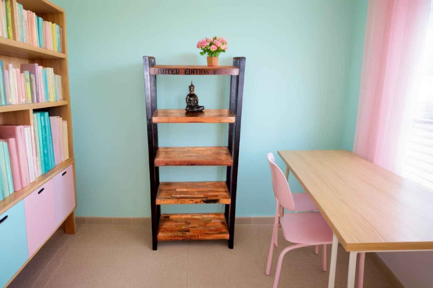 Strip folding books self. It may be used as a magazine or shoe rack.This book shelf is made up of Sheesham (Rosewood) with Natural polishing.It contain five shelf and has knockdown facility. It is light weighted and easy to move wooden book shelf.This book shelf is mostly used in study room as well as living room.You can buy this Sheesham wood furniture online from O my furniture.