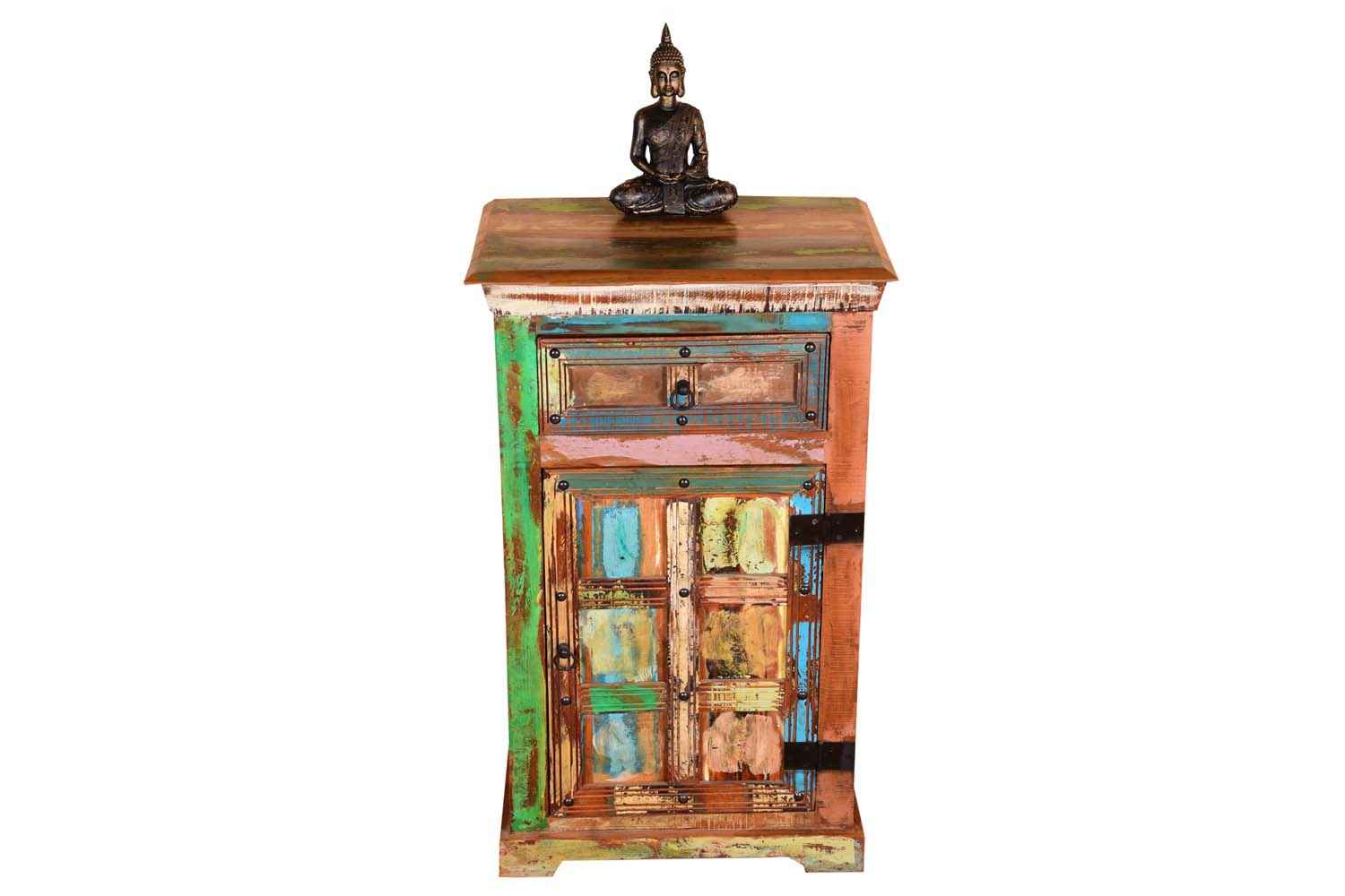 24 carat one drawer long small almirah is made by recycle wood with iron and we apply natural finish.This is one drawer one door small almirah. We use this almirah in multipurpose use.This almirah design and look is so antique that will make your interior more attractive.You can buy Solid wood furniture online from O my furniture.