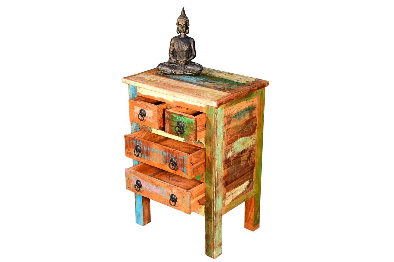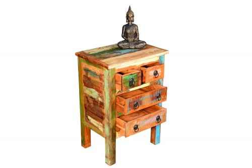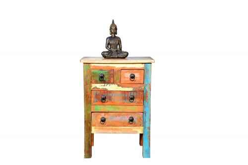24 carat reclaimed chest of drawer is made by recycle wood with natural finish. This chest of drawer contains four drawers with iron accessories. We used all types of recycle old wood and powder coated iron accessories. Its front horizontal row has two drawers, which is marginally smaller than from the others. It is small recycle chest of drawer with antique look. This recycle wood chest of drawer is light weighted and easy to move.You can buy recyled wooden furniture online from O my furniture