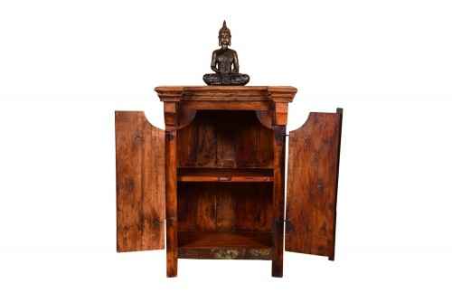 Churl design two door small almirah made by old  wood with iron and antique finish.This is two door small almirah and it’s inner section are divided in two parts middle shelf.This is very beautiful antique design to buy.You can buy Solid wood furniture online from O my furniture.