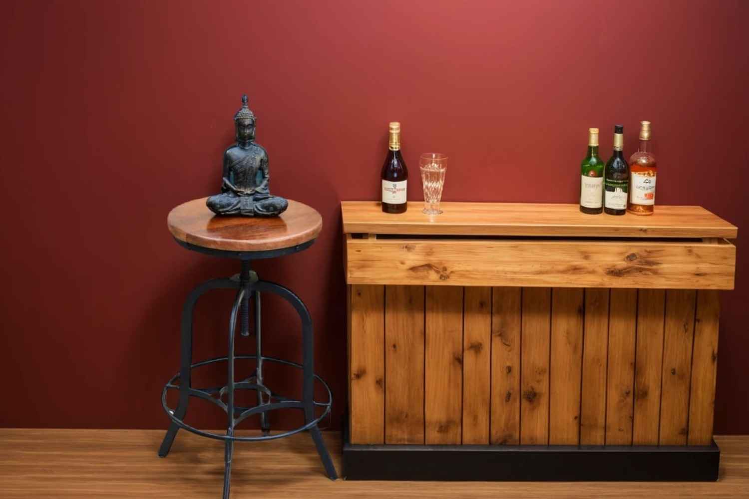 kingly wine bar chair is made by Sheesham (Rosewood) with walnut finishing. It is the best wooden chair for our  bar concepts.It is long height seating bar chair with strips shape and wing design at the back portion of the bar chair.It is an heavy and stable Sheesham wood bar chair.You can buy this Sheesham wood furniture online from O my furniture.