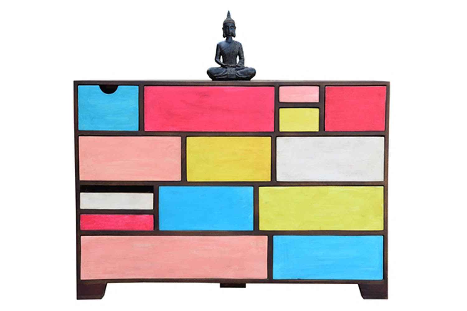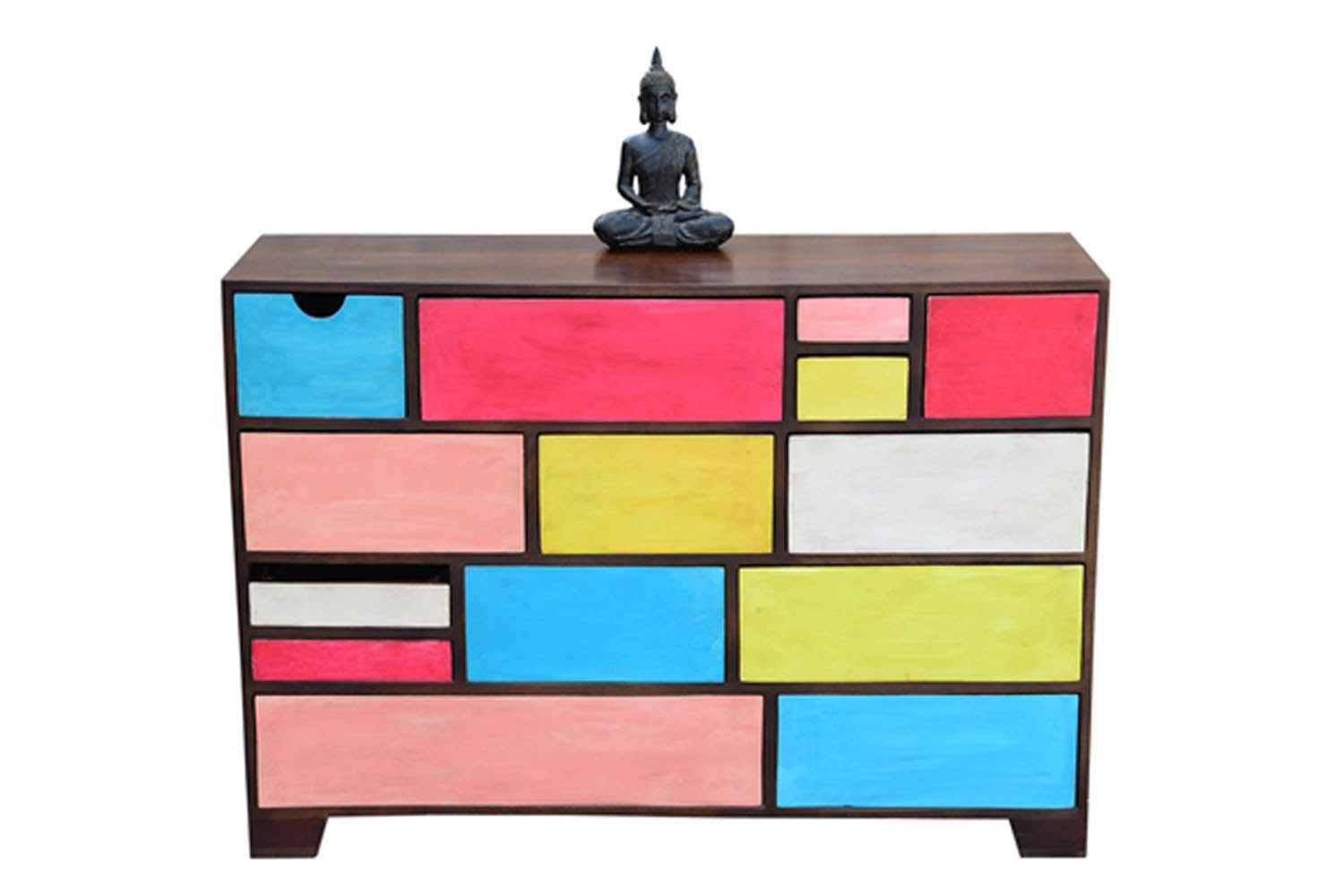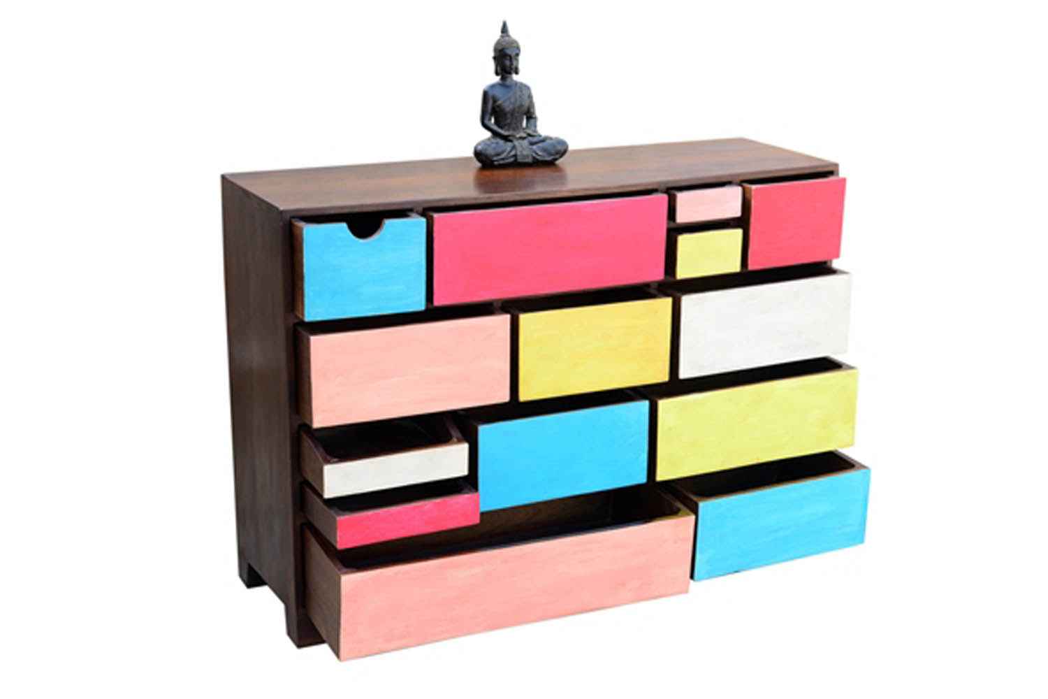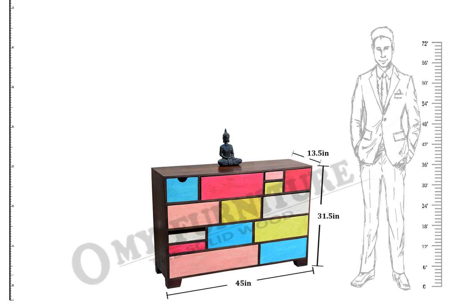 Beamy long chest of drawer is made by Mango wood with walnut and teak finish. This is five drawer set of chest of drawer. We have used walnut finishing in body and drawers are finished with teak that makes it amazing colorful look with more storage capacity and less space consuming that make your interior more attractive.You can buy bedroom furniture online from O my furniture.