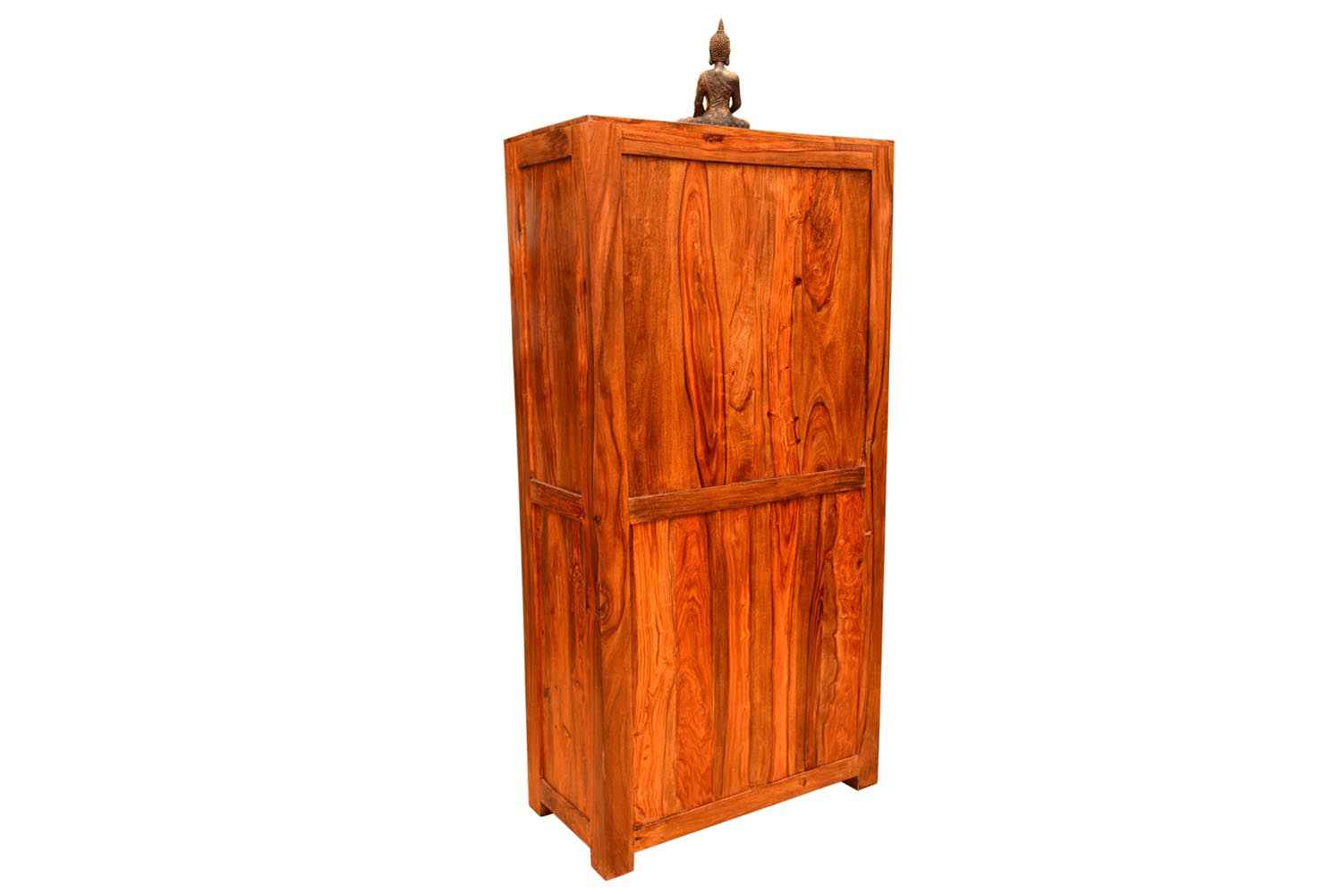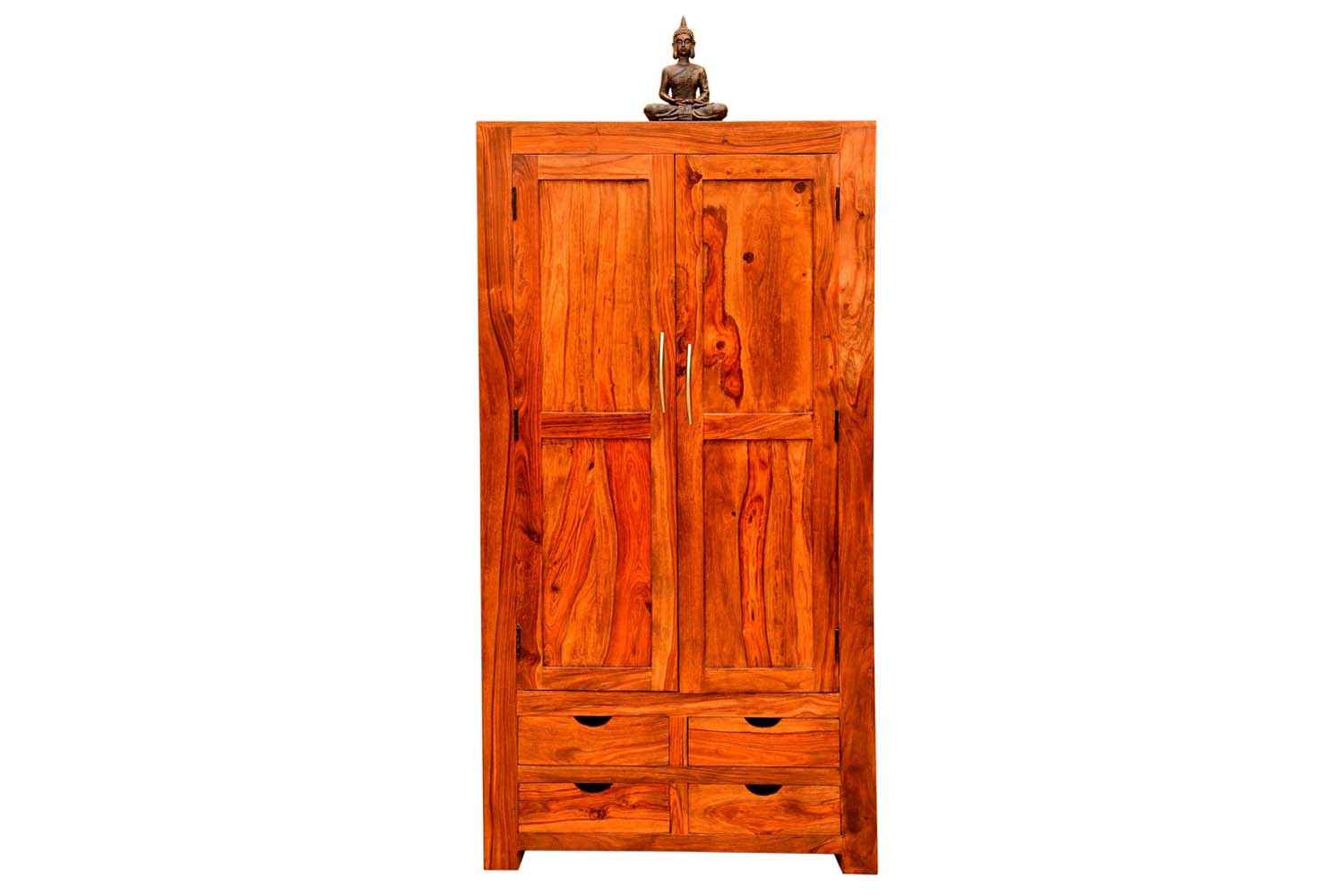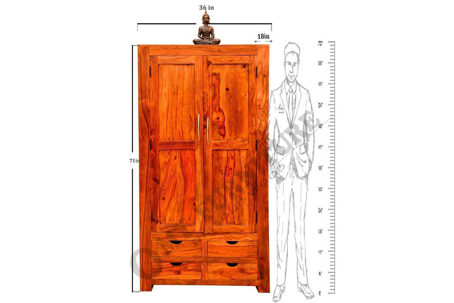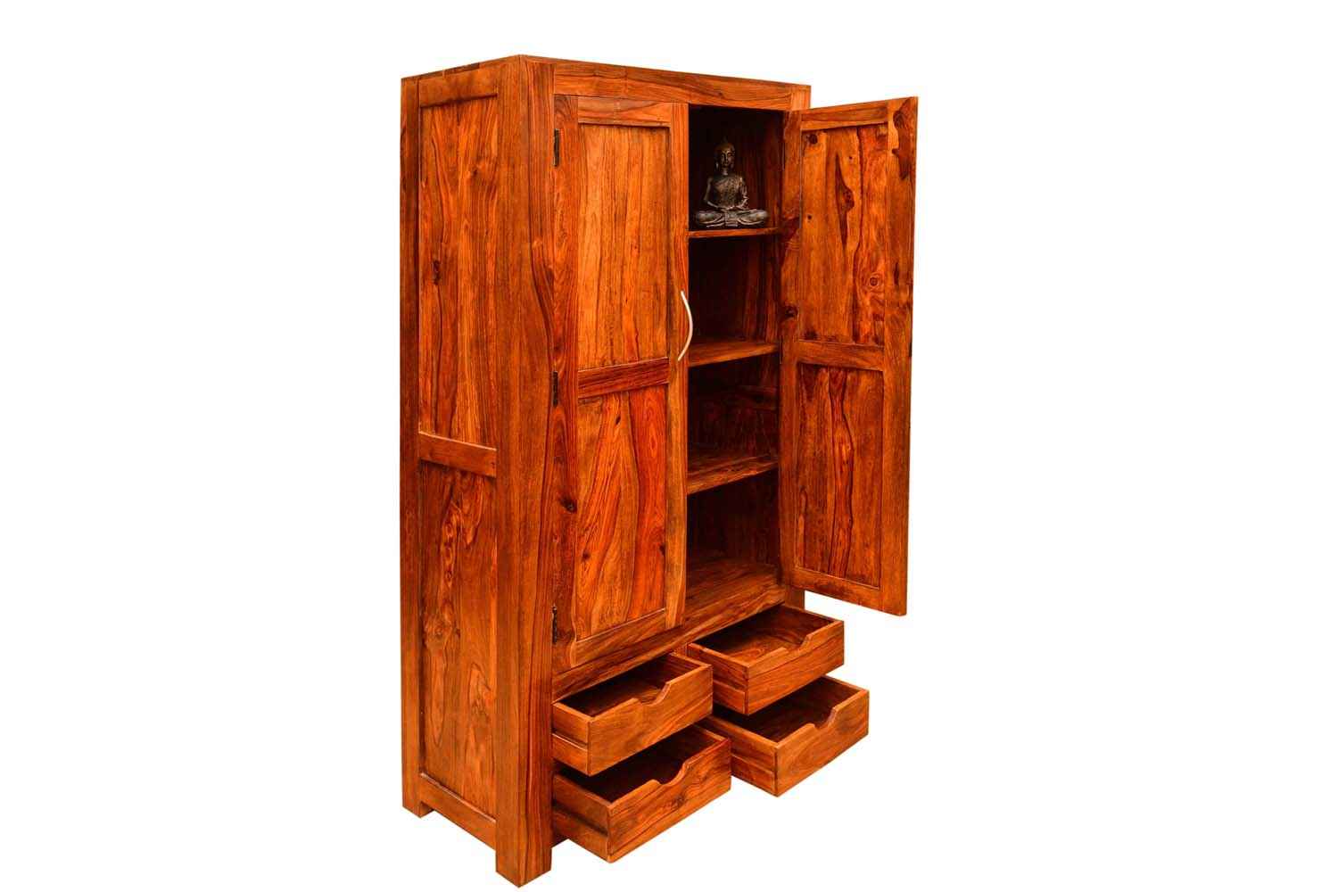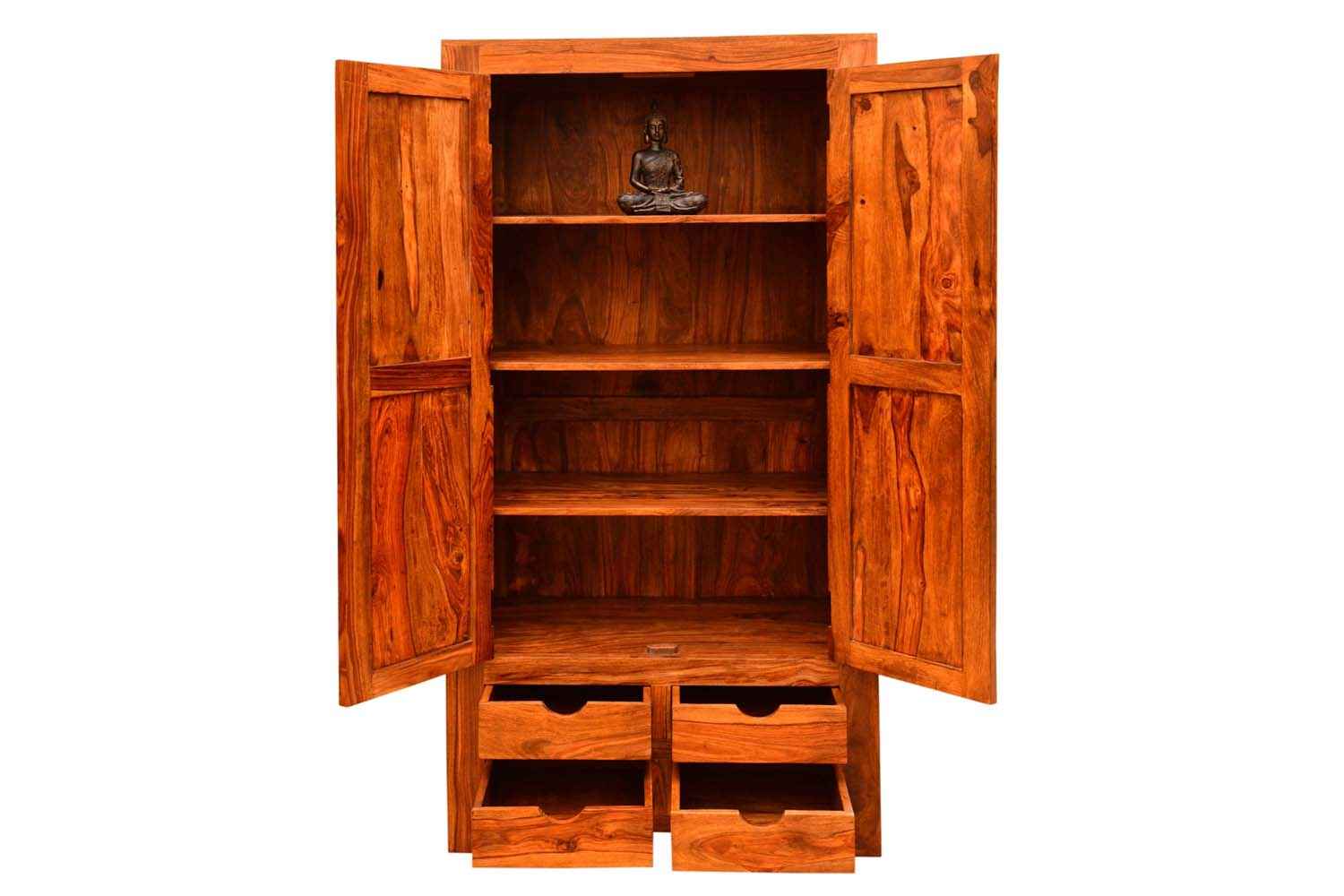 Shutter one Door wardrobe is made up of Mango wood with walnut finishing.This wooden furniture wardrobe contains Shutter pattern door and three shelf with four sections.It is used in living room, bedroom as well as wardrobe and storage.You can buy this beautiful wooden furniture wardrobe online from O my furniture.