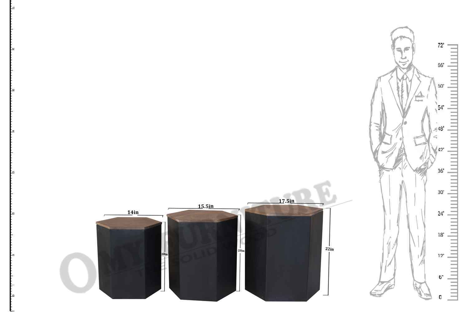 Spencer hexagon Solid wood iron Hollo coffee table - Set of 3 made by solid wood with teak finish in top and bottom is made by Powder coated Iron. These stool are use for multipurpose. like side table and outdoor coffee table as well as. O My Furniture deal in solid wood furniture like living room furniture, bedroom furniture , Dining room furniture , study room furniture. O My Furniture work only on quality Furniture on very affordable price.