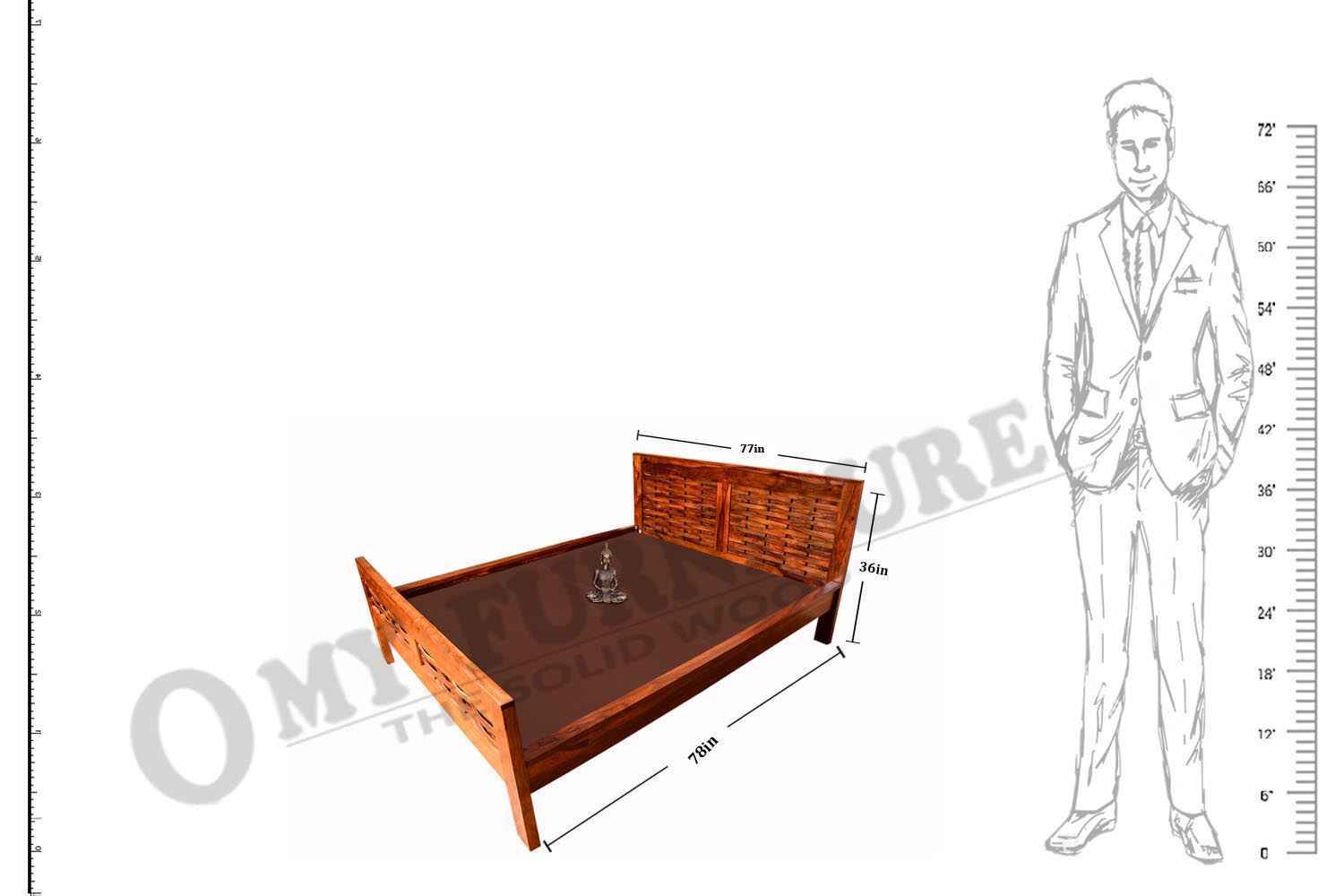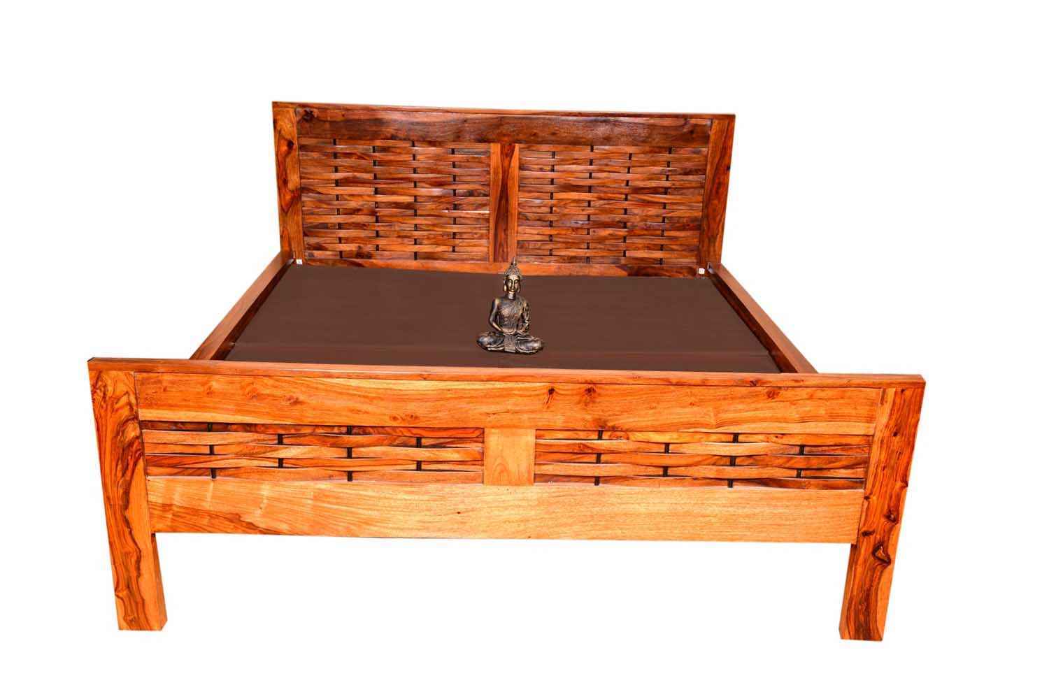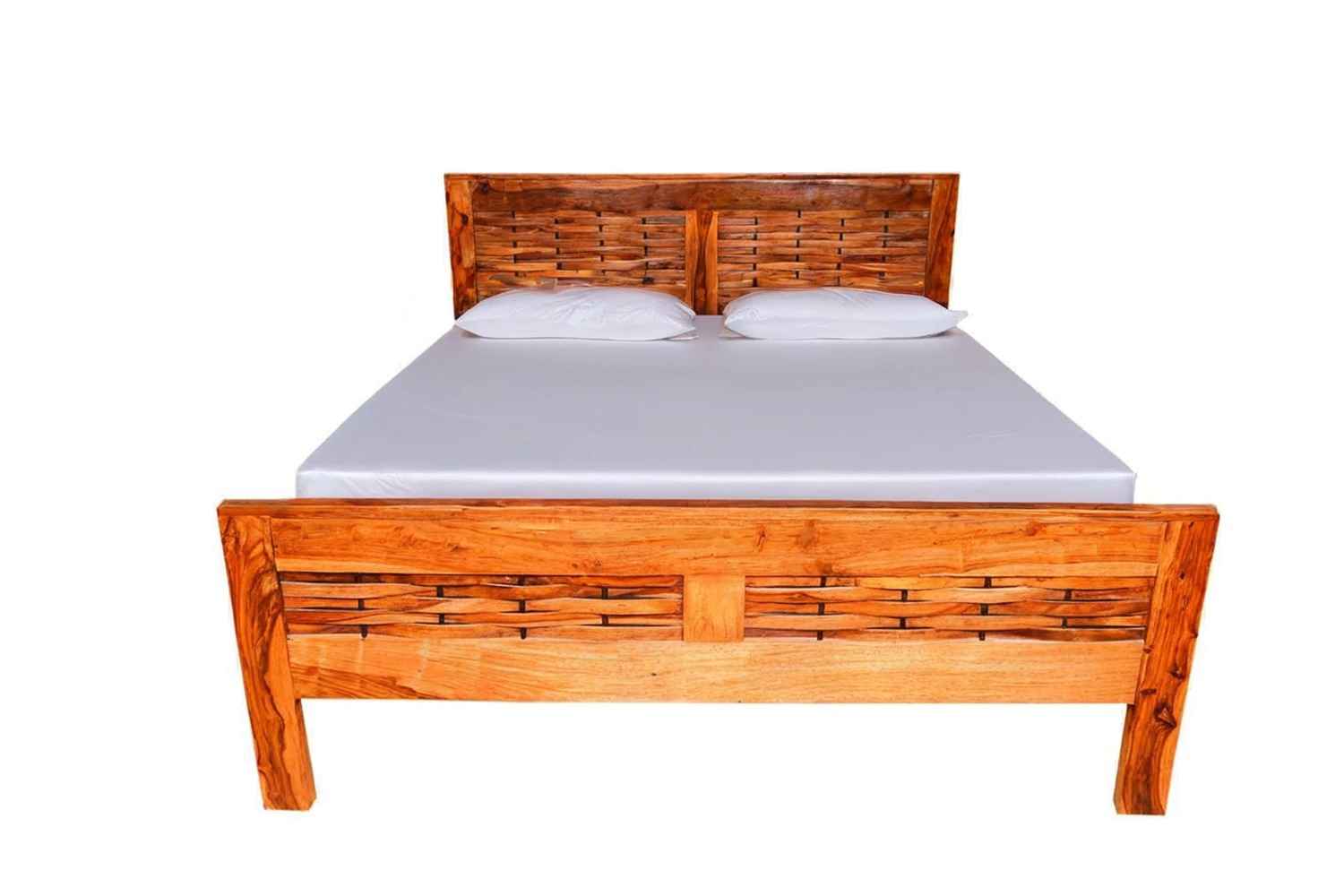 Spline Queen Bed is made up of Sheesham (Rosewood) with teak and iron finishing. It is queen size bed. Head and leg portion of the bed are design with Sheesham wooden strips quilling by iron rods. It is without storage bed and easy to move. It’s quilling strip giving a unique look.You can buy this Sheesham wood furniture online from O my furniture.