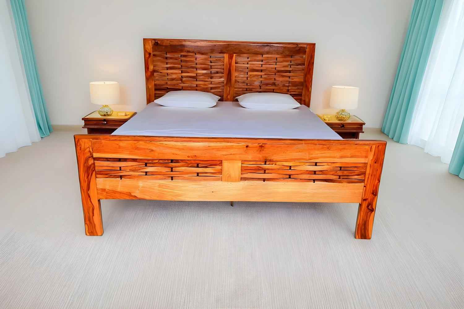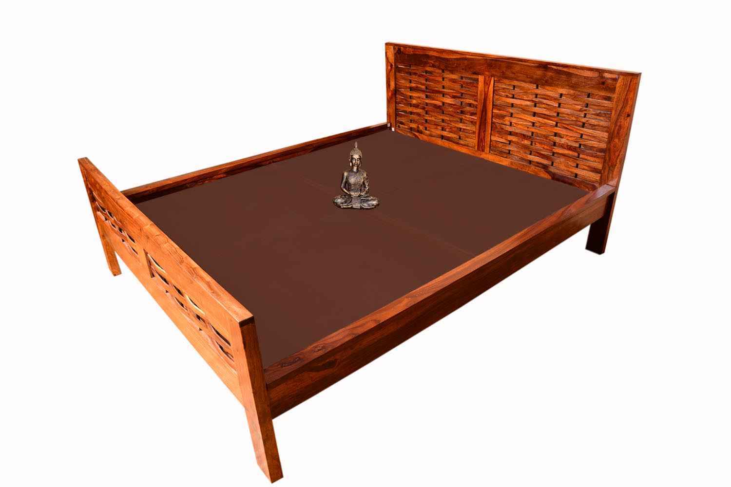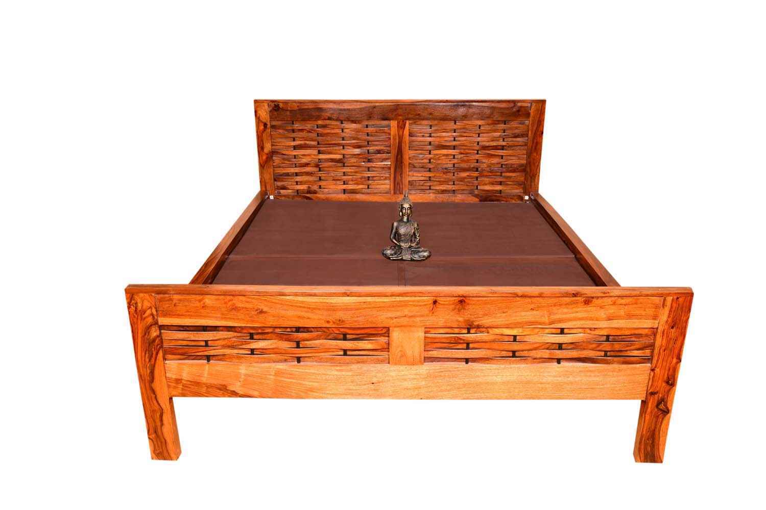 Spline king Bed is made by Sheesham (Rosewood) with teak finish and iron finishing. This wooden bed is king size bed. Head and leg portion both are design by Sheesham wood strips quilling with iron rods.It is without storage bed and easy to move. This Sheesham wood bed quilling strips gives a unique look. You can buy this Sheesham wood furniture online by O my furniture.