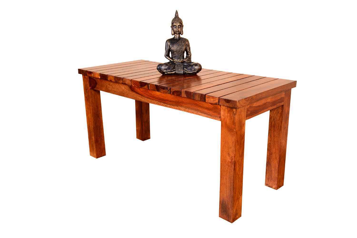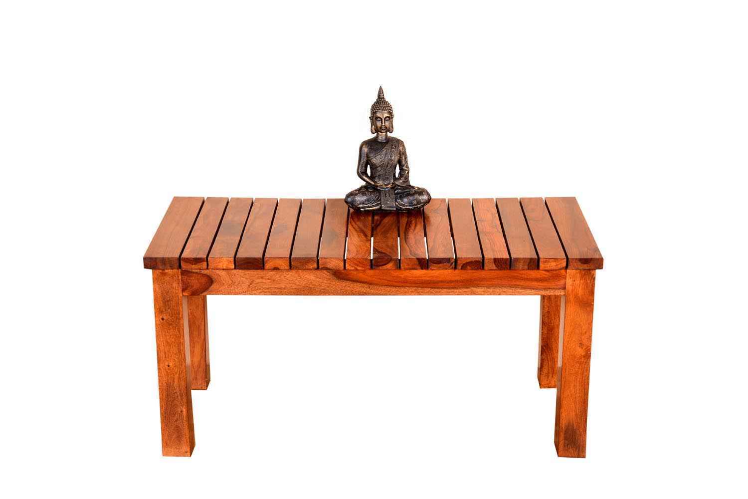 Spline strip teak finish medium bench. Sheesham wood bench is made up of Sheesham (Rosewood)  with teak finishing. This wooden bench is light weighted and easy to move product. This bench is also available in set of three. Sheesham wood furniture product always count as a best quality product to buy.