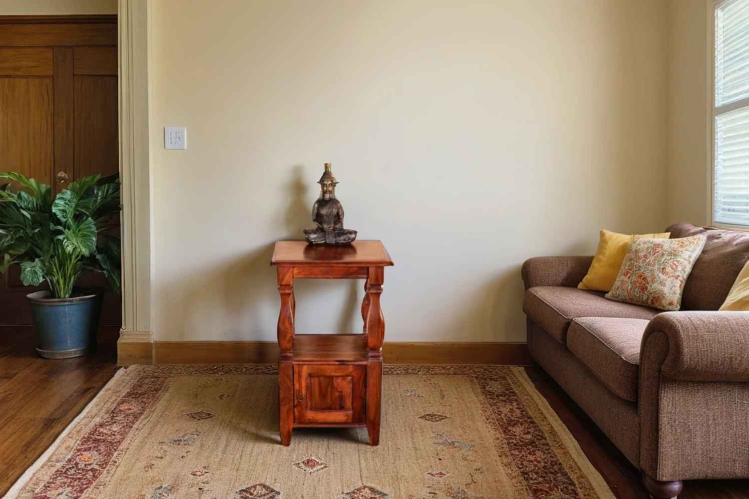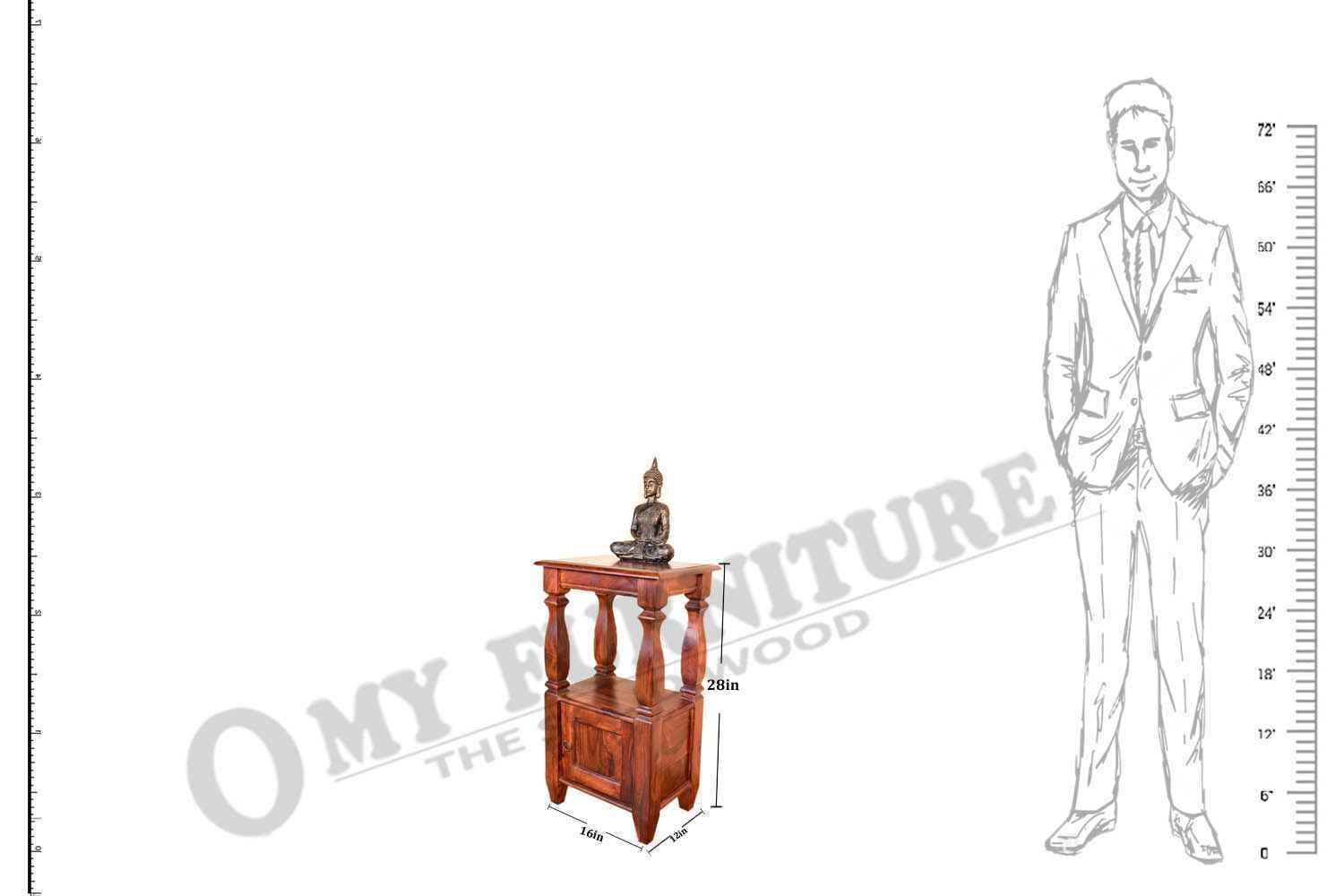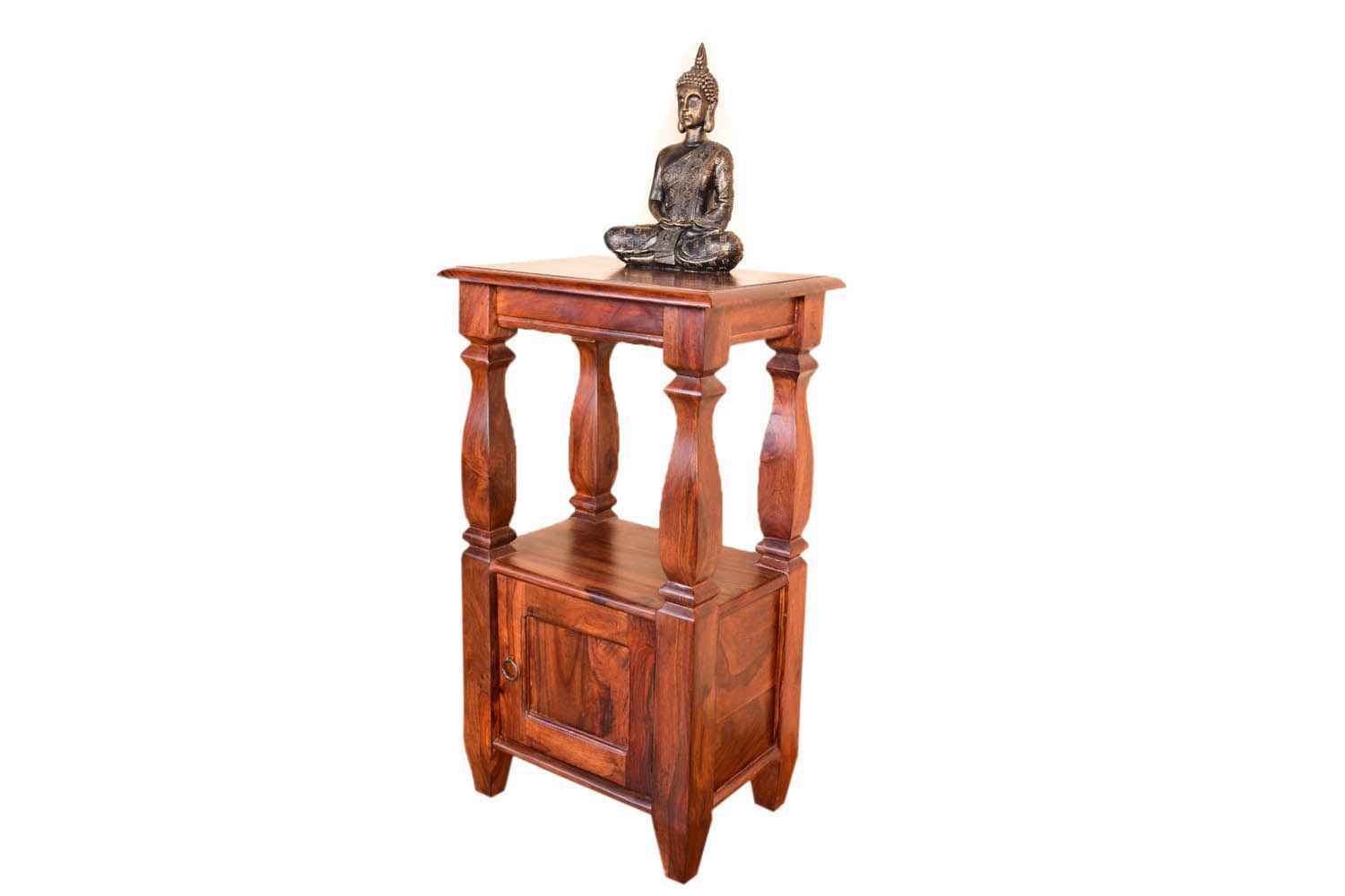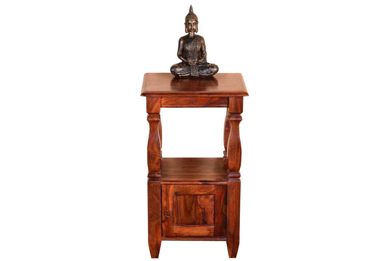 Stiff Wooden Solid wood Side table  is made by Sheesham (Rosewood) with honey finish.It is a Stiff Wooden Solid wood Side table .It contain one door section in bottom and simple top.Well carving rectangle shape legs attached with upper blank portion and bottom section also. Sheesham wood always count as a best quality furniture product to buy.You can buy Sheesham wood furniture online from O my furniture.