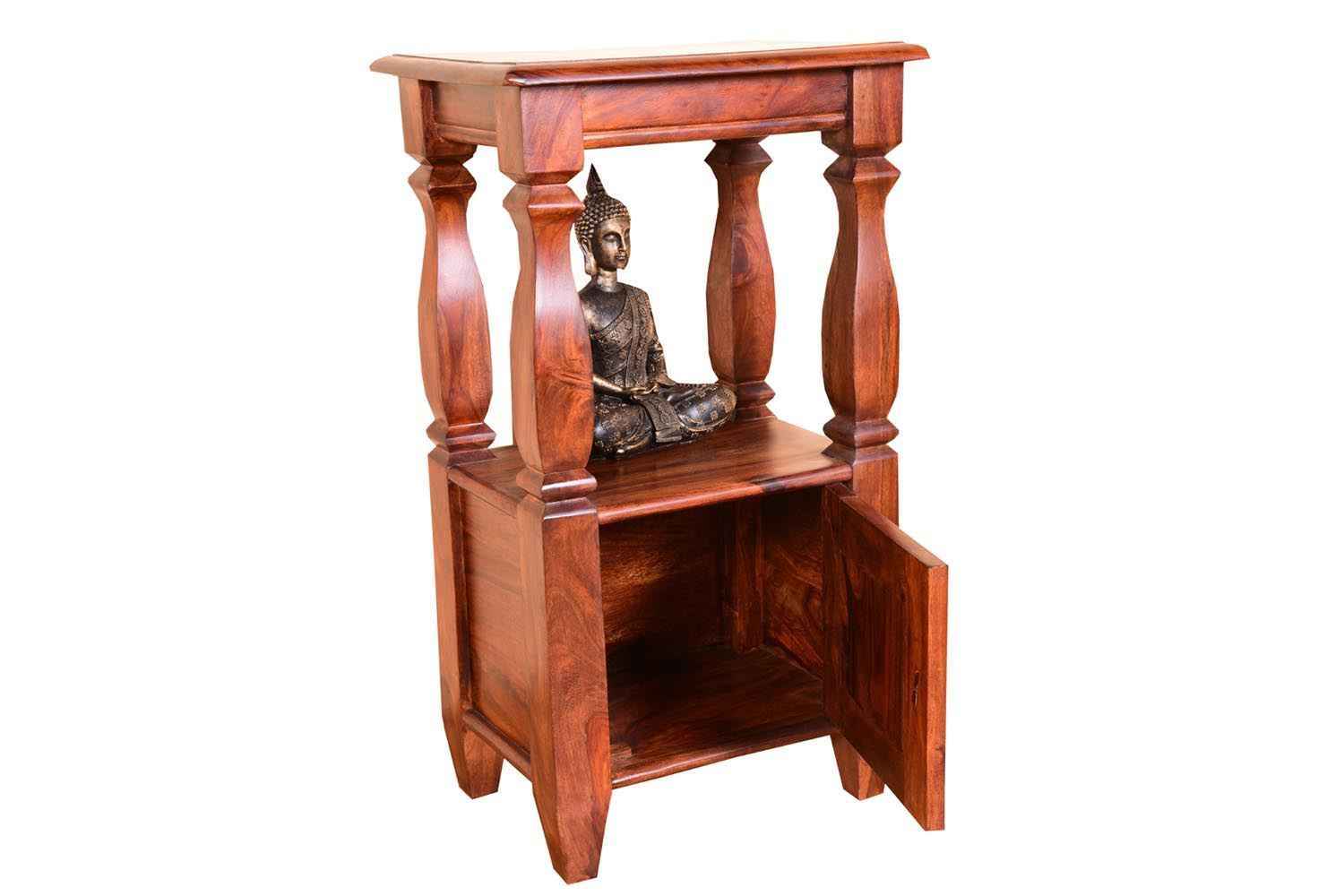 varied wooden Side Table is made by Sheesham (Rosewood) with teak finish.It is a Living room side table.It contain three shelf that contain four section covered by one single door.Well carving curve on door.It is light weighted and easy to move.You can buy Sheesham wood furniture online from O my furniture.