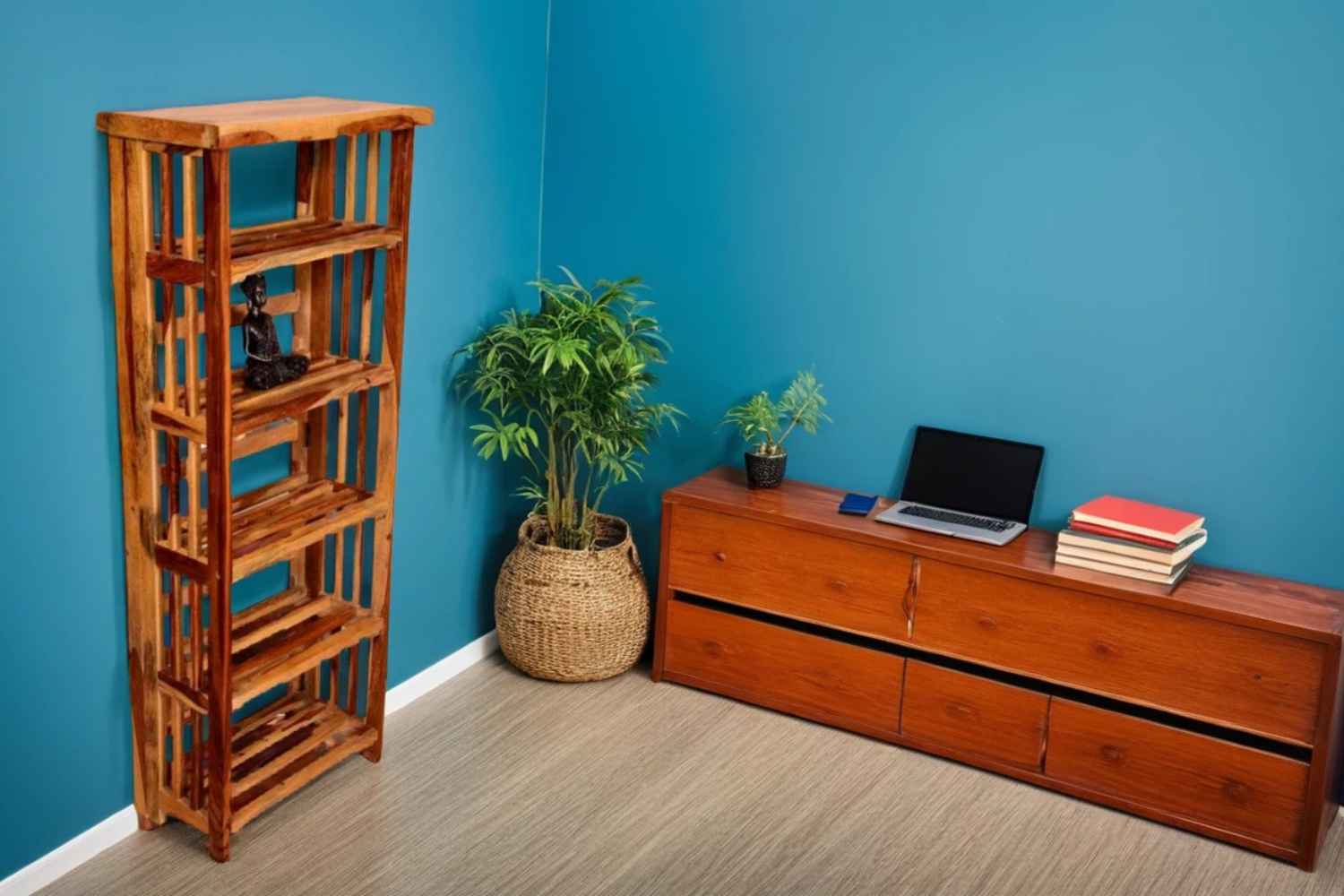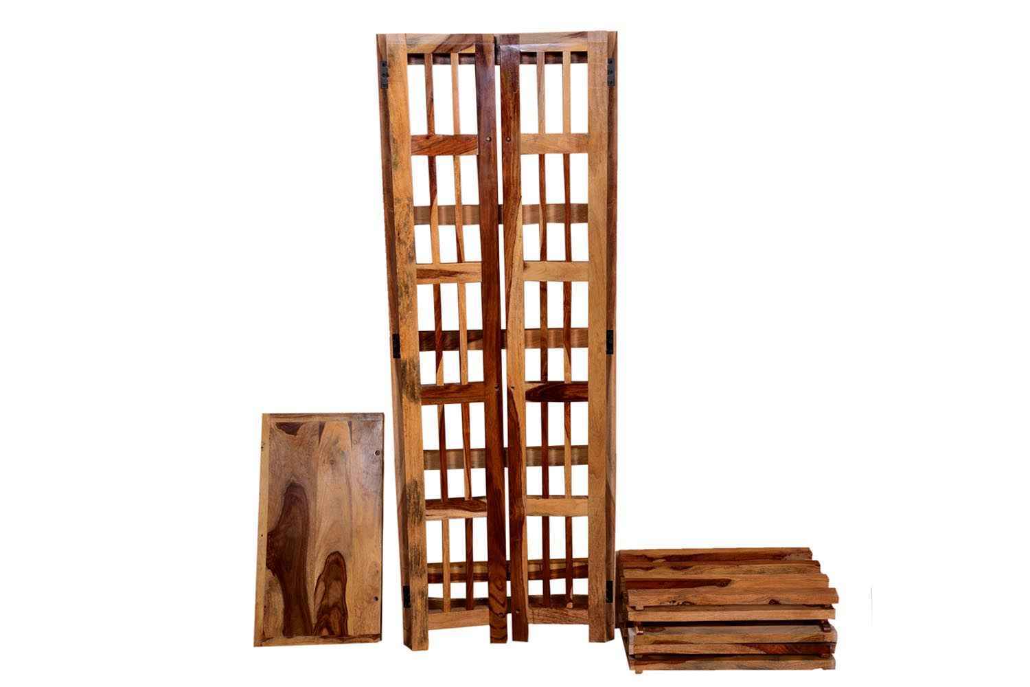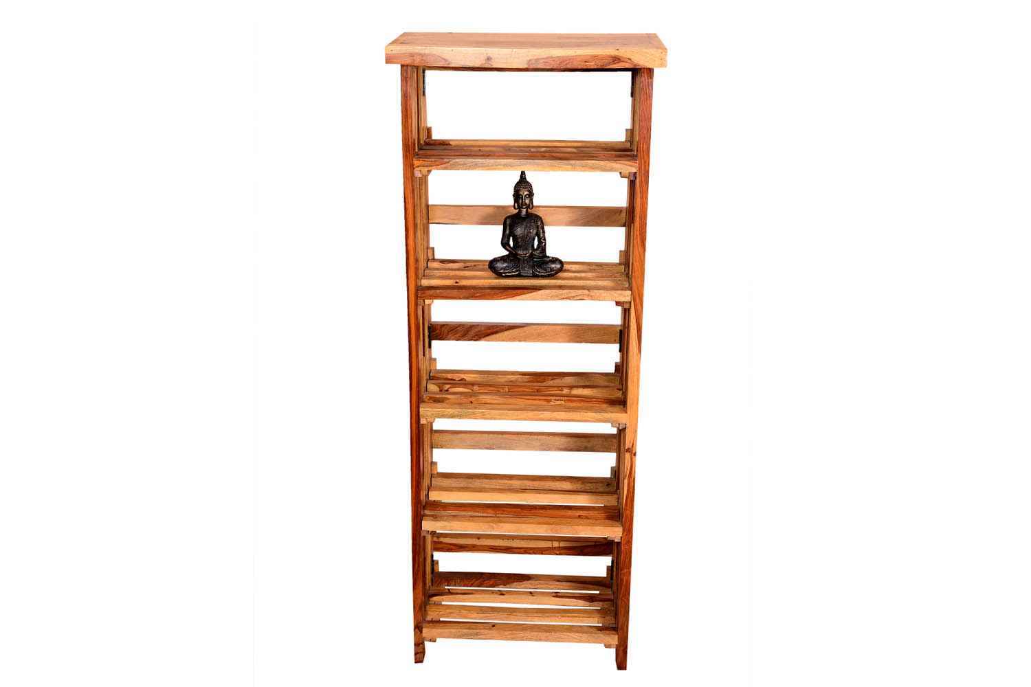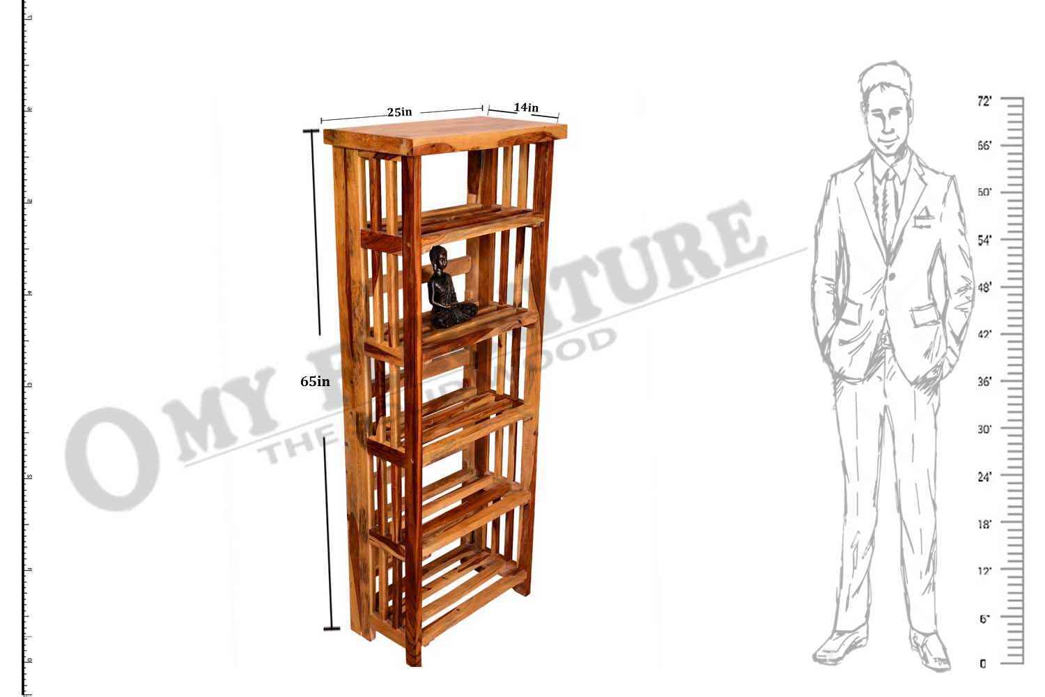 Strip folding books self. It may be used as a magazine or shoe rack.This book shelf is made up of Sheesham (Rosewood) with Natural polishing.It contain five shelf and has knockdown facility. It is light weighted and easy to move wooden book shelf.This book shelf is mostly used in study room as well as living room.You can buy this Sheesham wood furniture online from O my furniture.
