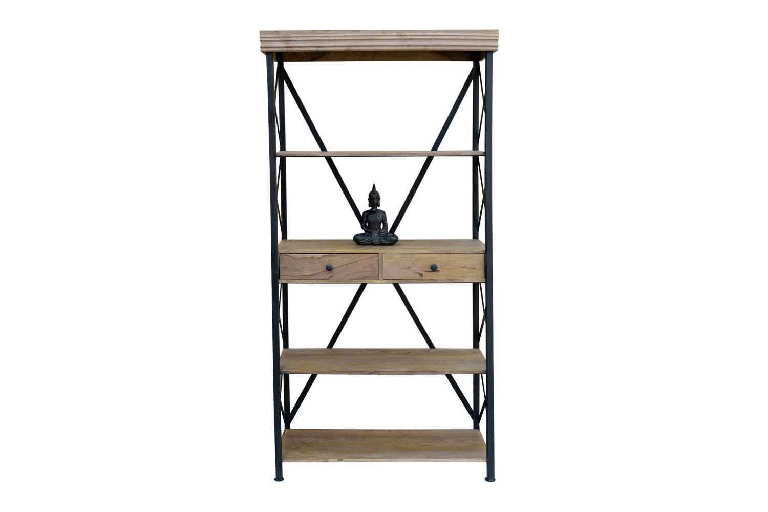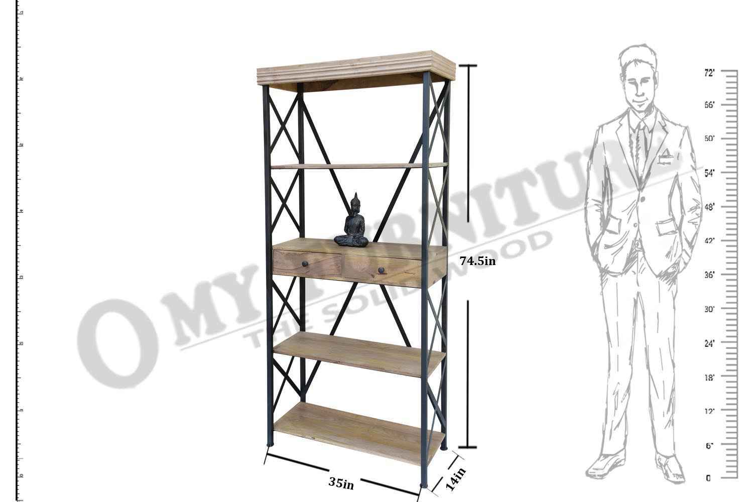 Reclaimed industrial book self. This book shelf is made for multipurpose use. This book shelf is made by Recycle wood and iron Natural finish & Dico finish. It contains five shelf. This book shelf is used in study room as well as in living room. Hardware and iron are powder coated to improve Iron quality.You can buy this Solid wood furniture online from O my furniture.