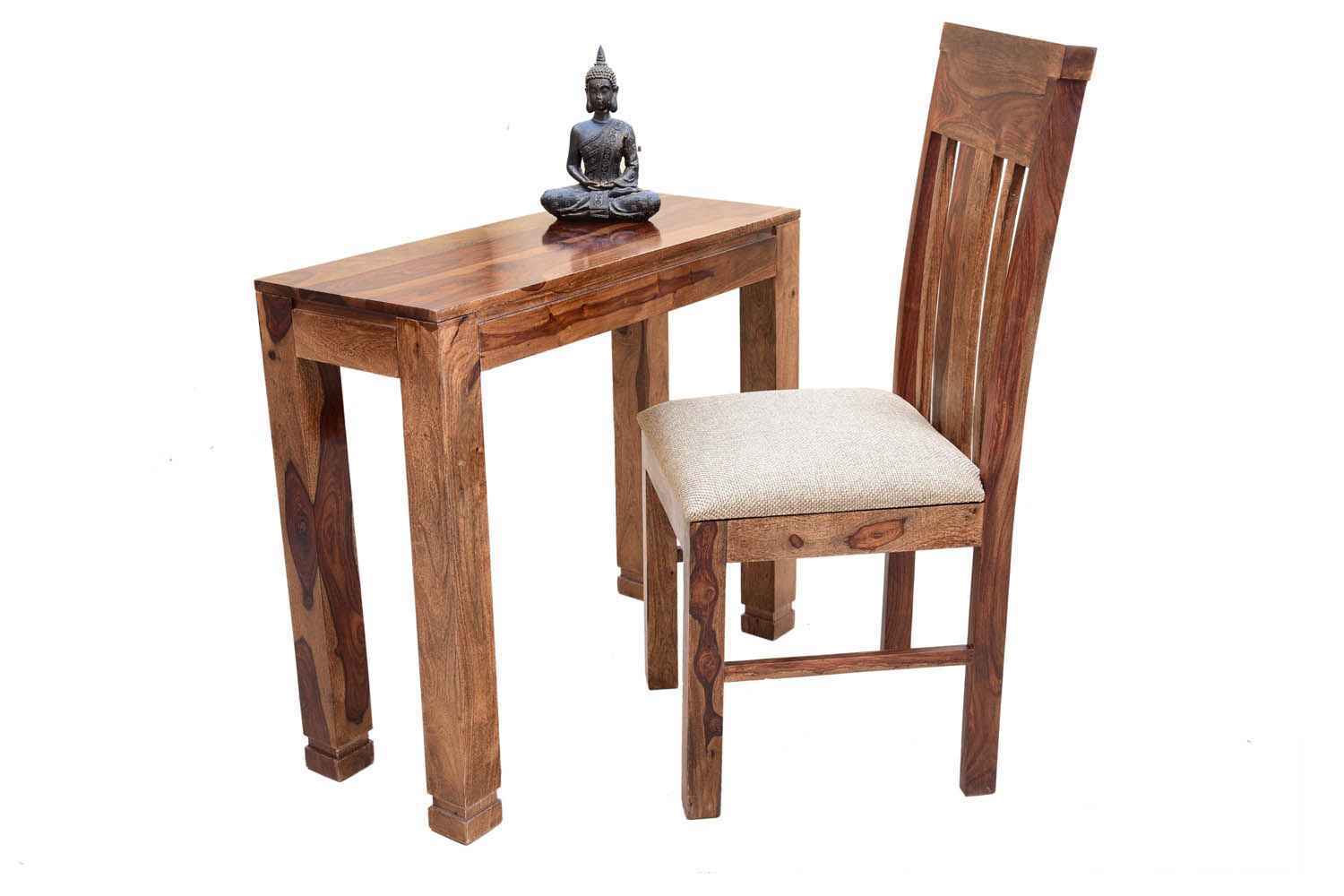 Classic bottom curved leg teak finish study table with zernal chair is set is made by Sheesham wood with teak finish. It is simple rectangle shape study table.This is also use as console table. It is light weighted and available in knockdown facility that makes shifting easy.