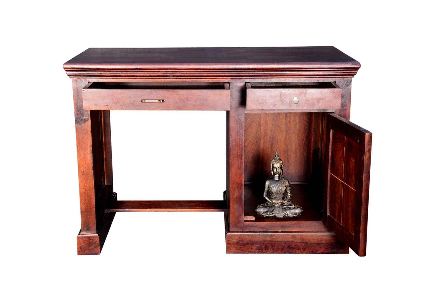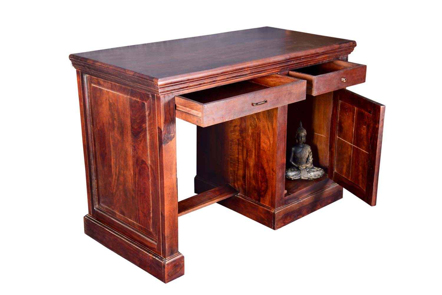 Neoteric console cum study table with bottom self is made by Sheesham (Rosewood) with teak finish. That is one drawer study table. Study table contains bottom shelf for store extra article.As we know Sheesham wood furniture or solid wood furniture have good strength and this type of wooden furniture always count in good quality furniture. You can buy Solid wood furniture online by O My Furniture.