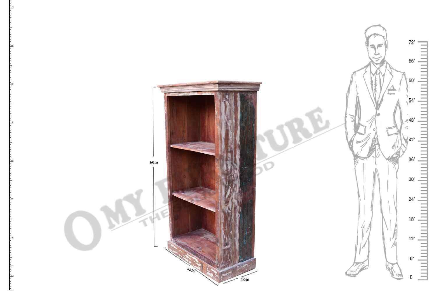 Reclaimed industrial book self. This book shelf is made for multipurpose use. This book shelf is made by Recycle wood and iron Natural finish & Dico finish. It contains five shelf. This book shelf is used in study room as well as in living room. Hardware and iron are powder coated to improve Iron quality.You can buy this Solid wood furniture online from O my furniture.