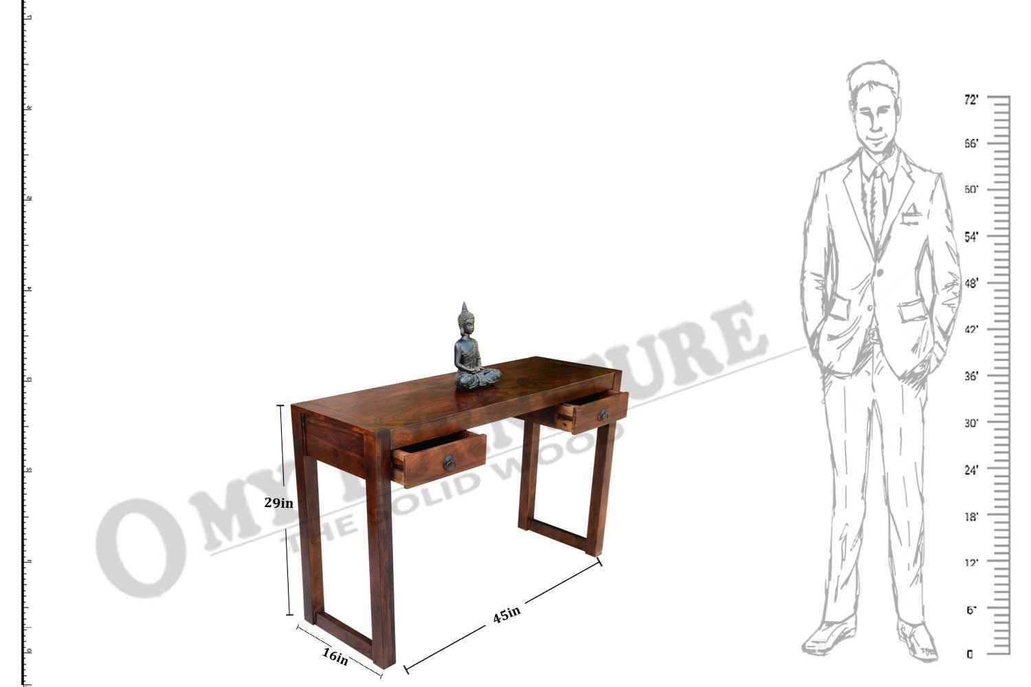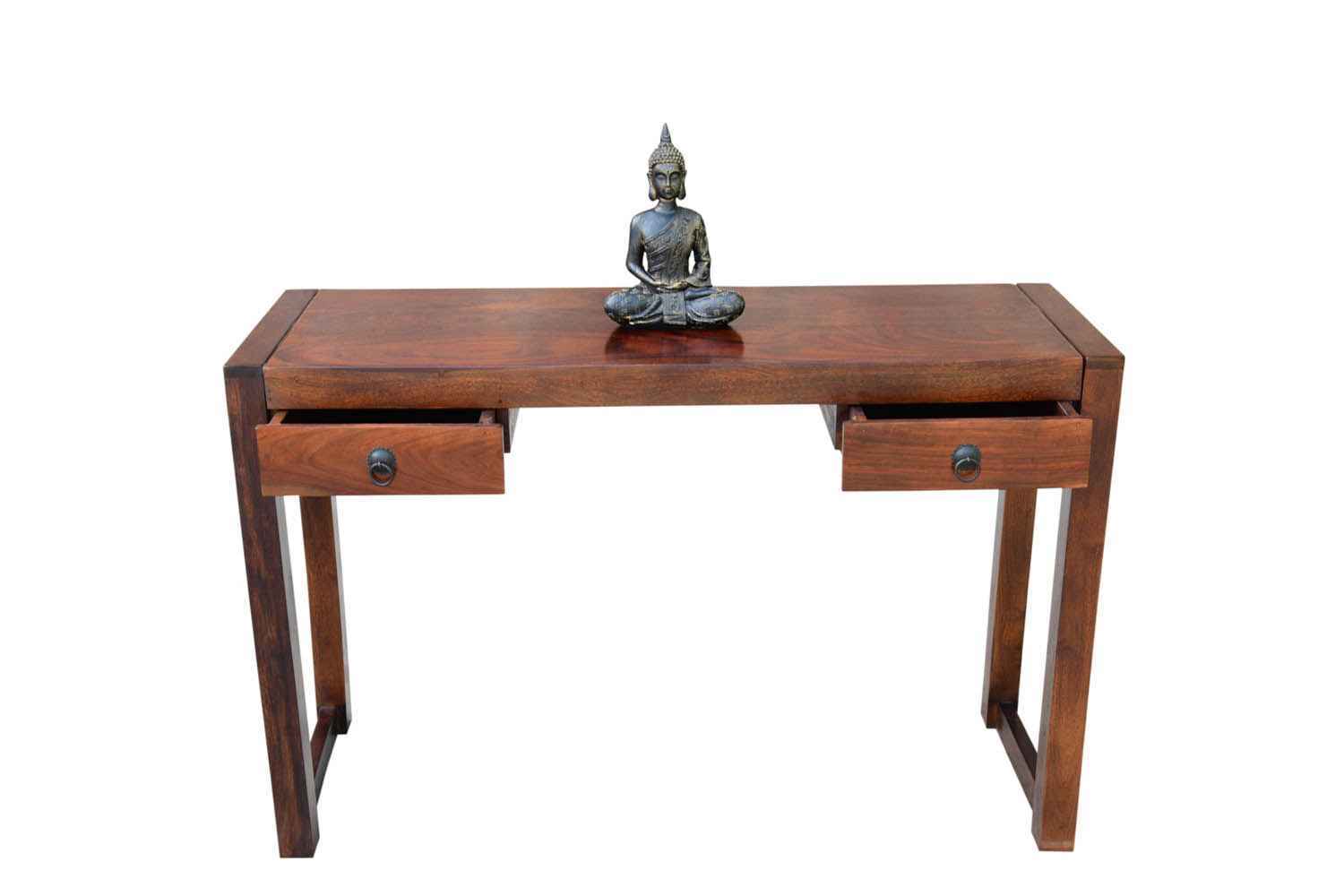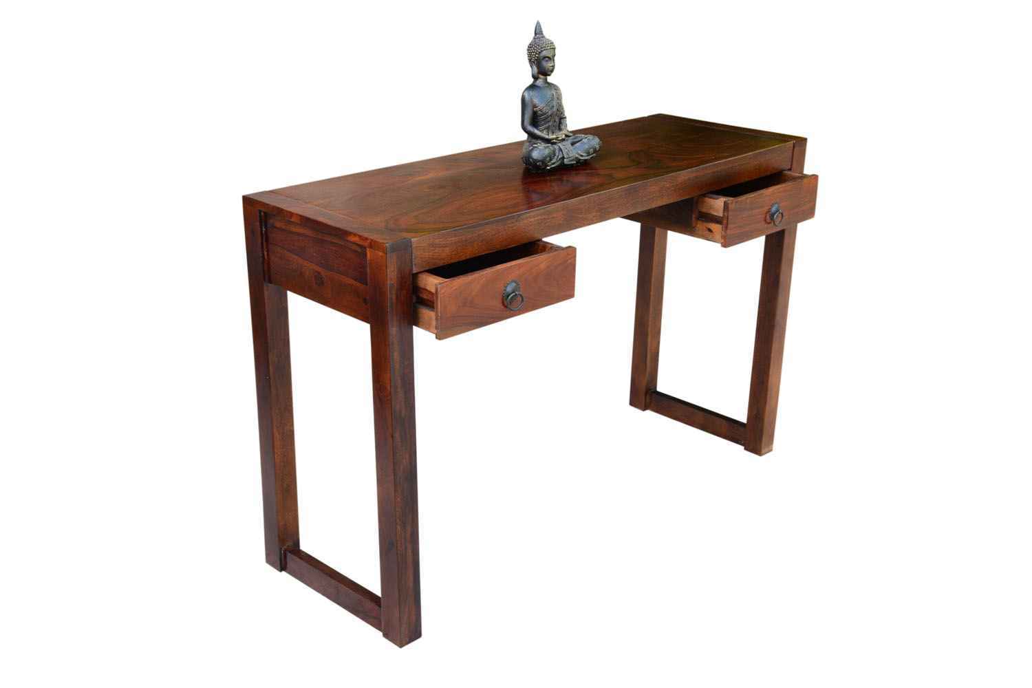 Neoteric console cum study table with bottom self is made by Sheesham (Rosewood) with teak finish. That is one drawer study table. Study table contains bottom shelf for store extra article.As we know Sheesham wood furniture or solid wood furniture have good strength and this type of wooden furniture always count in good quality furniture. You can buy Solid wood furniture online by O My Furniture.