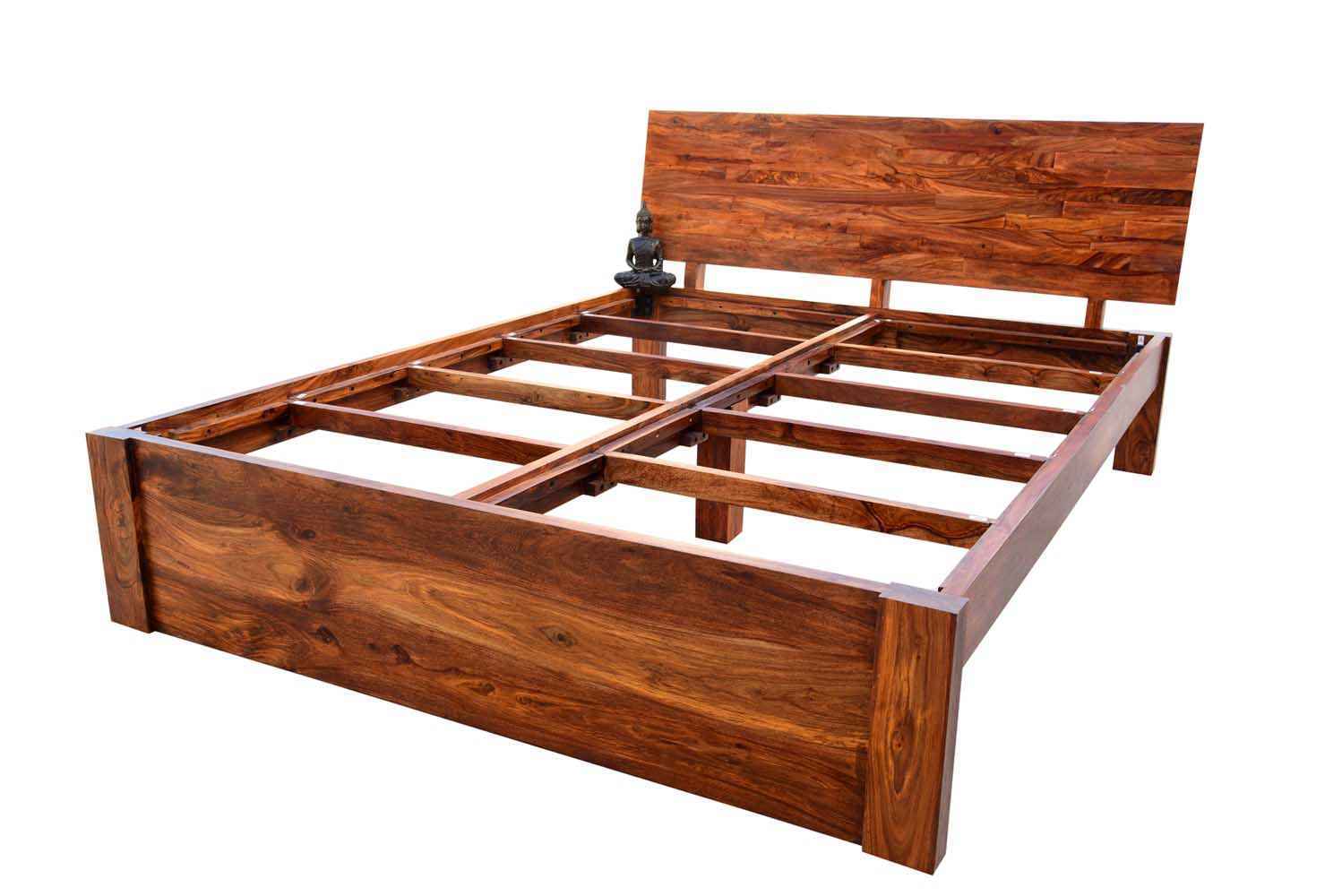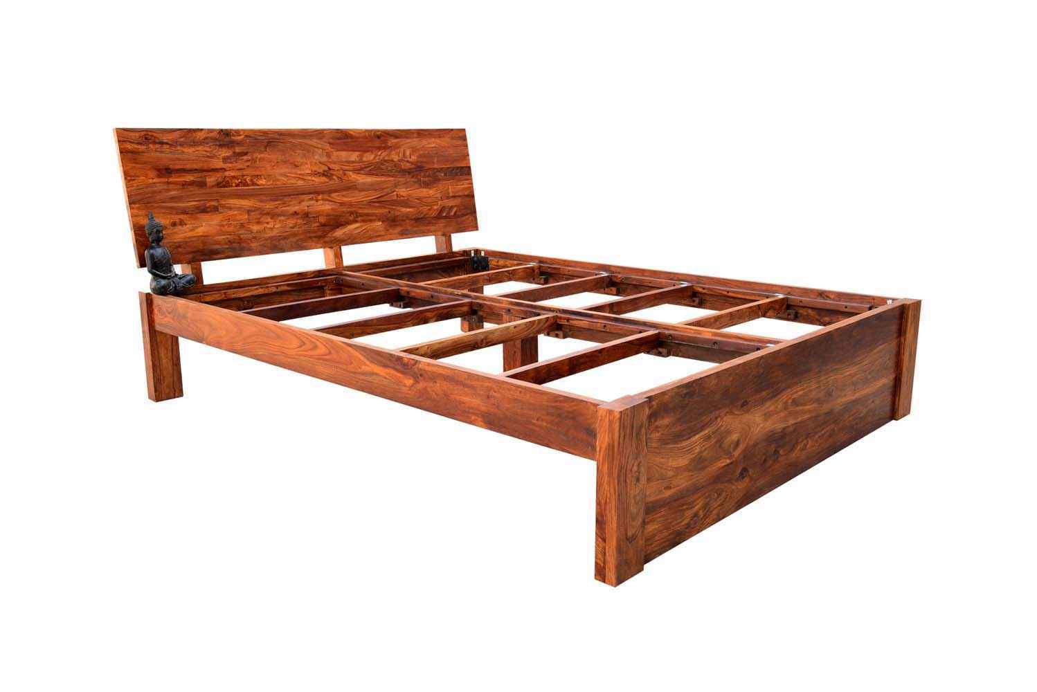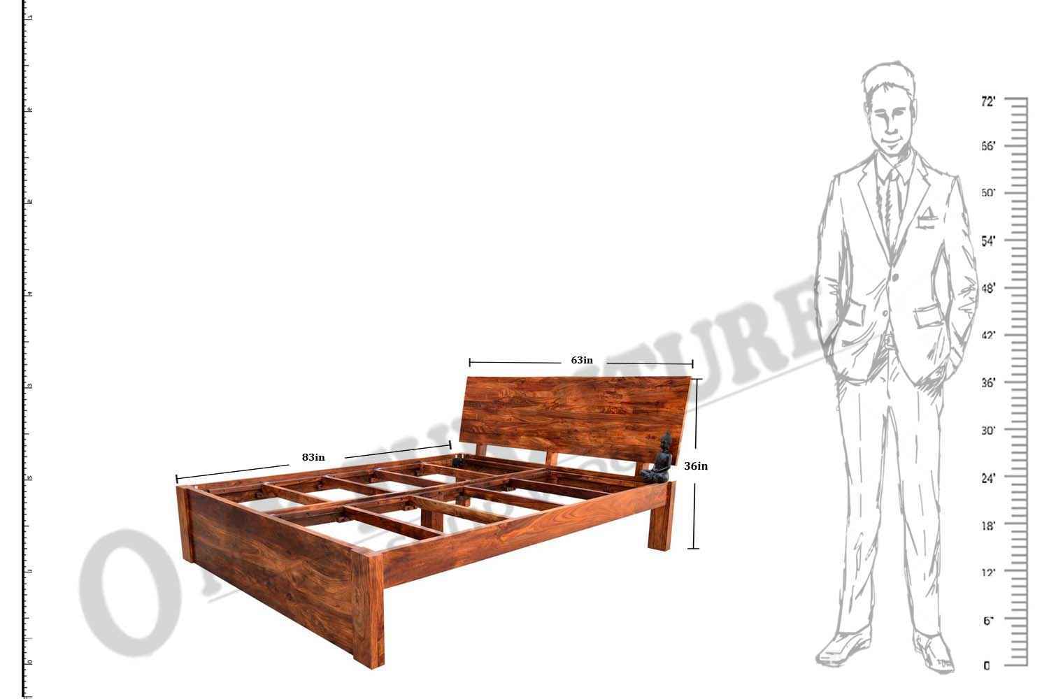 Spline Queen Bed is made up of Sheesham (Rosewood) with teak and iron finishing. It is queen size bed. Head and leg portion of the bed are design with Sheesham wooden strips quilling by iron rods. It is without storage bed and easy to move. It’s quilling strip giving a unique look.You can buy this Sheesham wood furniture online from O my furniture.
