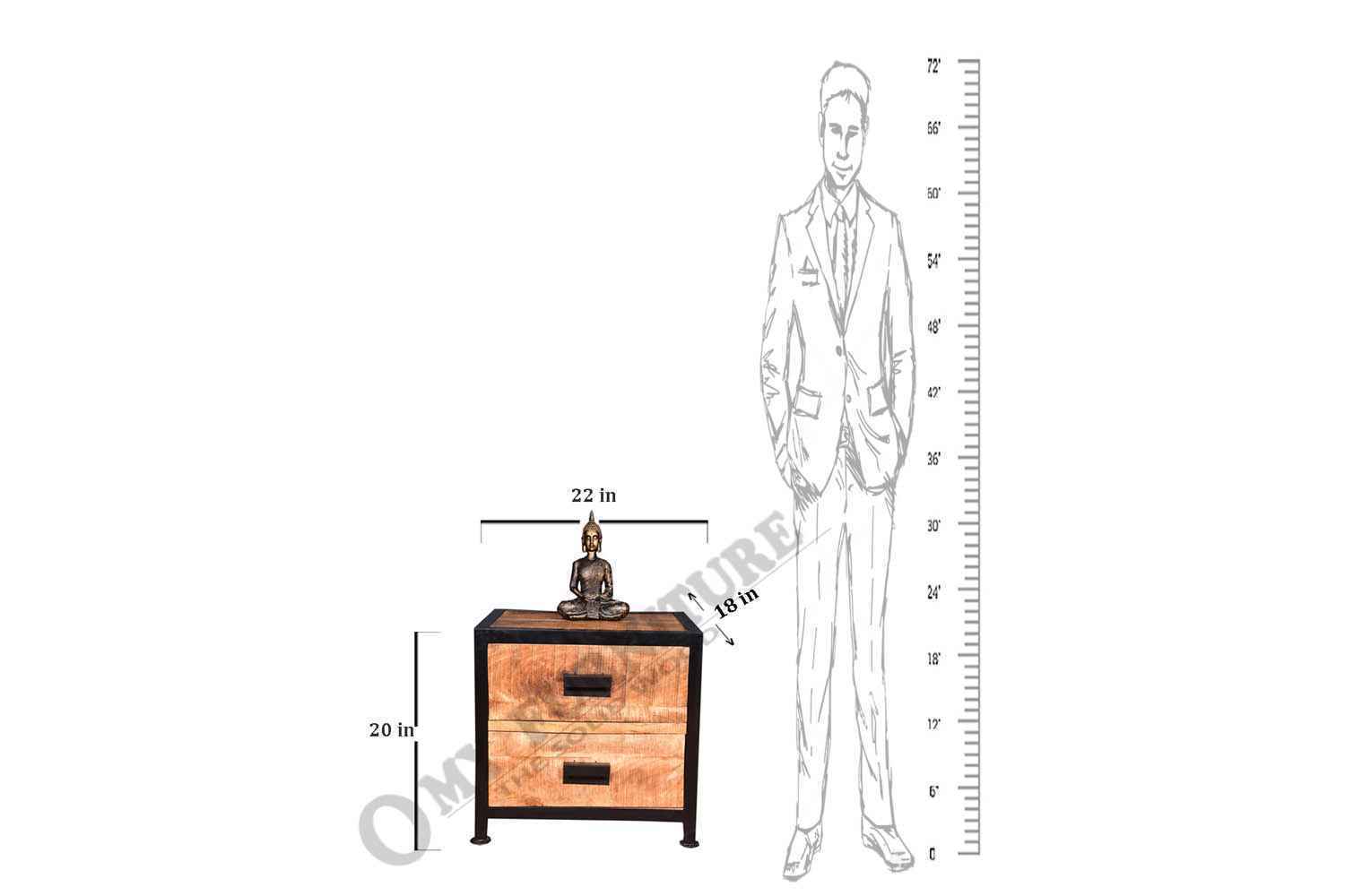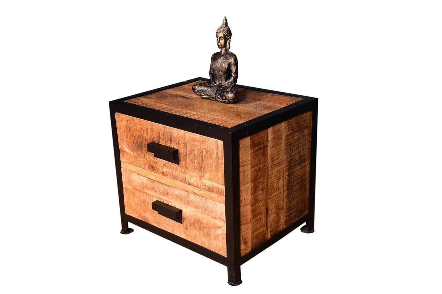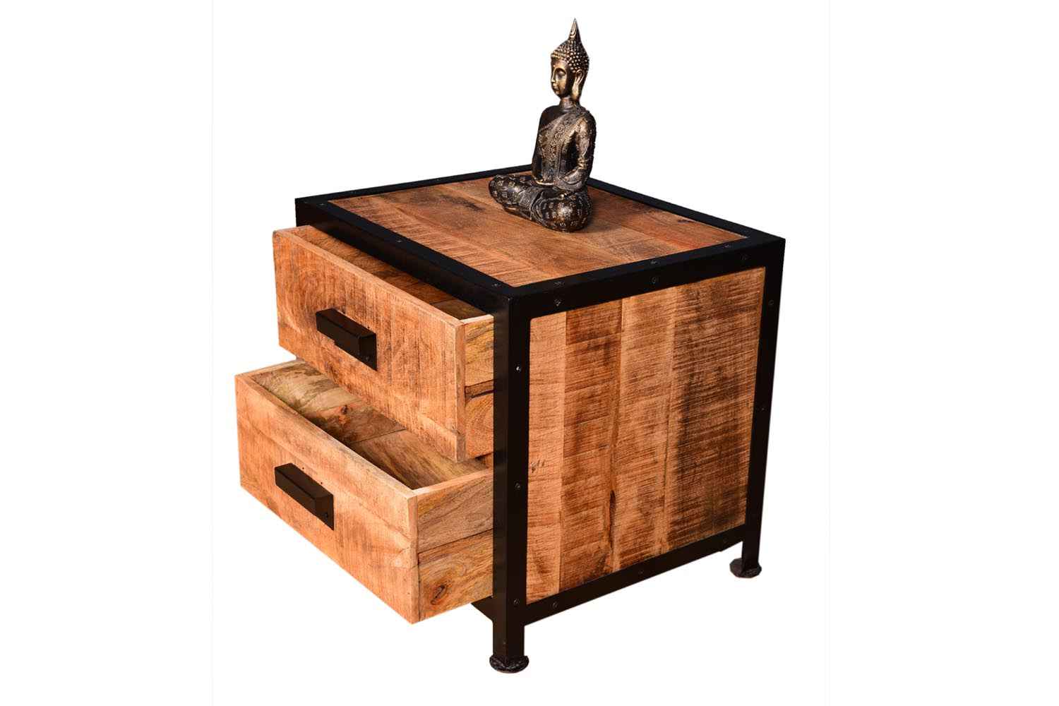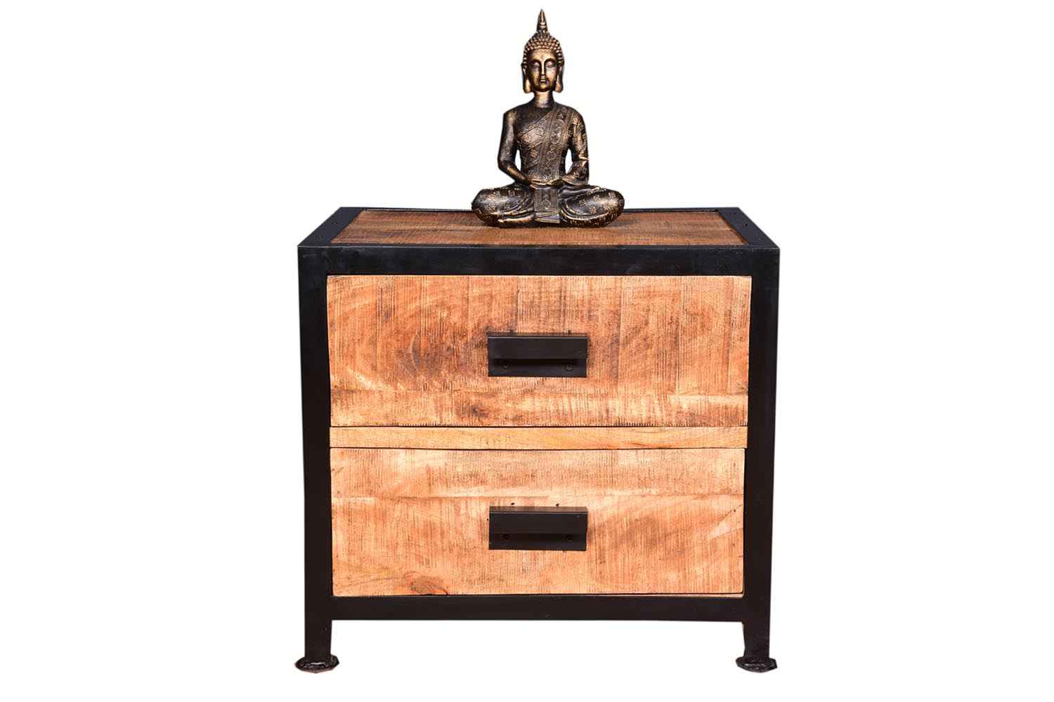 Urban two drawer bedside is made by Mango wood Iron & Natural Finish and Iron Powder Coated. Jigsaw wood finish gives antique look to this product. Accessory is also made by powder coated iron.It is beautiful industrial furniture.You can buy best quality bedroom furniture online from O my furniture.