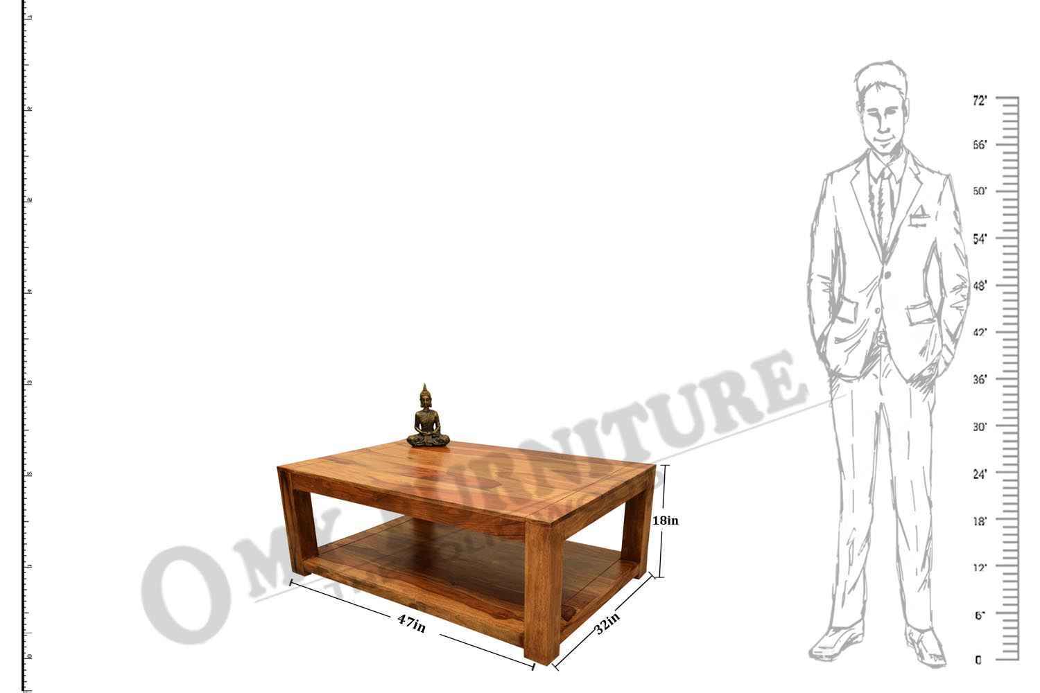 Magazine half Bottom shelf with natural finish coffee table is made by Sheesham (Rosewood) with teak finish.It is Sheesham wood coffee table that contain bottom shelf in half bottom area.It is a square shape coffee table and a square shape slit line curve on top.Coffee table is light weighted and easy to move. Sheesham wood furniture always count in best quality furniture.O my furniture a complete Solid wood furniture stores help to increase your living room and bedroom decorum.